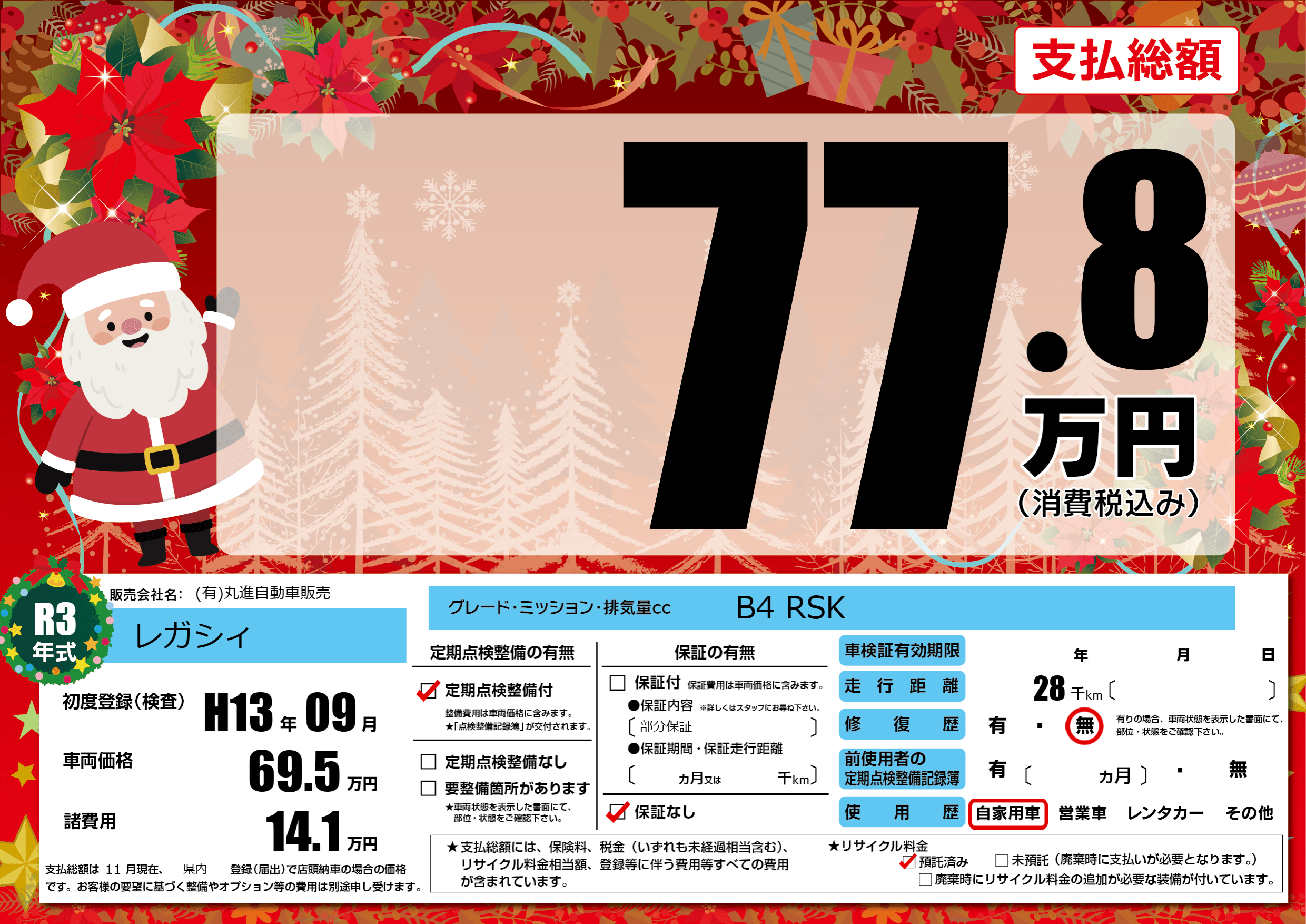 | 走行キロ | 2.8万km | 初年度登録 | H13年09月 |