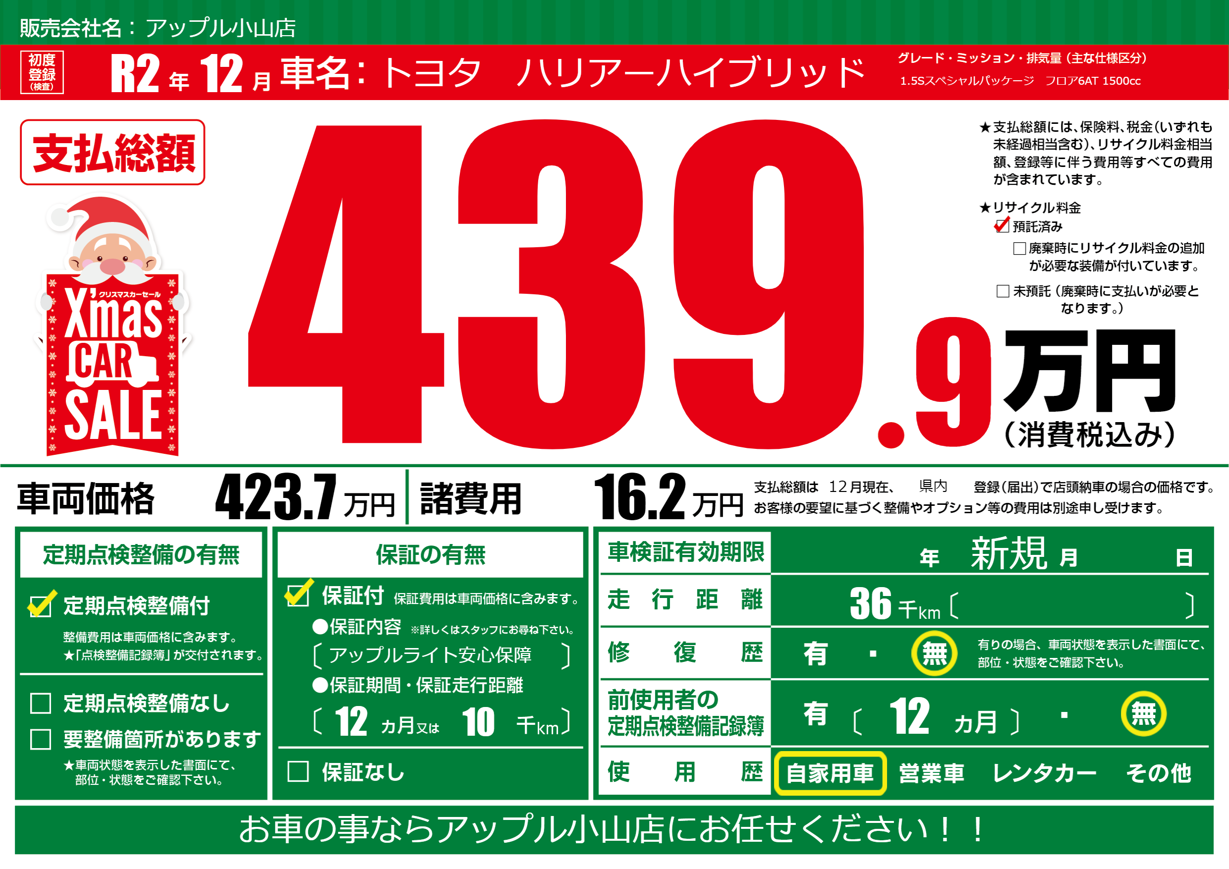 保証付き 保証内容(アップルライト安心保障) 12ヶ月または10千km |