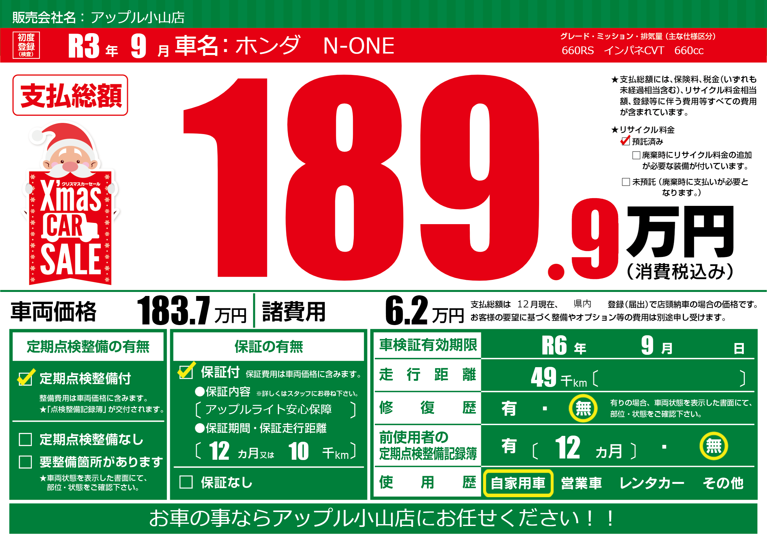 保証付き 保証内容(アップルライト安心保障) 12ヶ月または(10)千kmまで |