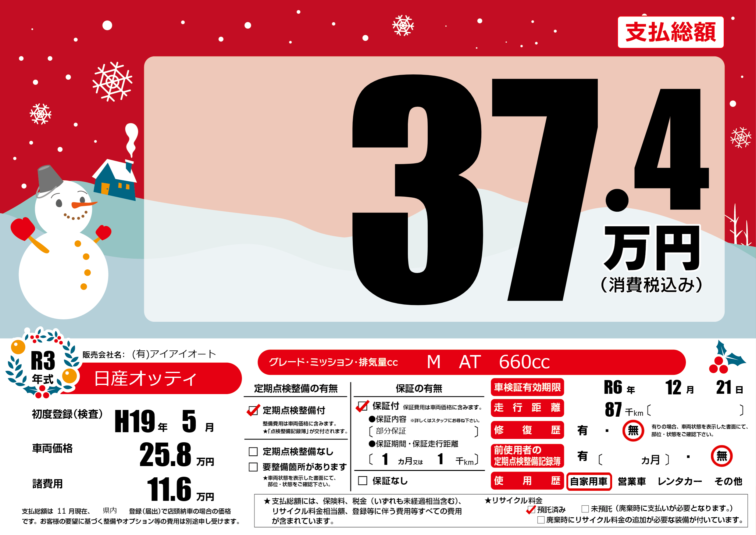 | 車検制限 | R6年 12月 21日 | ||