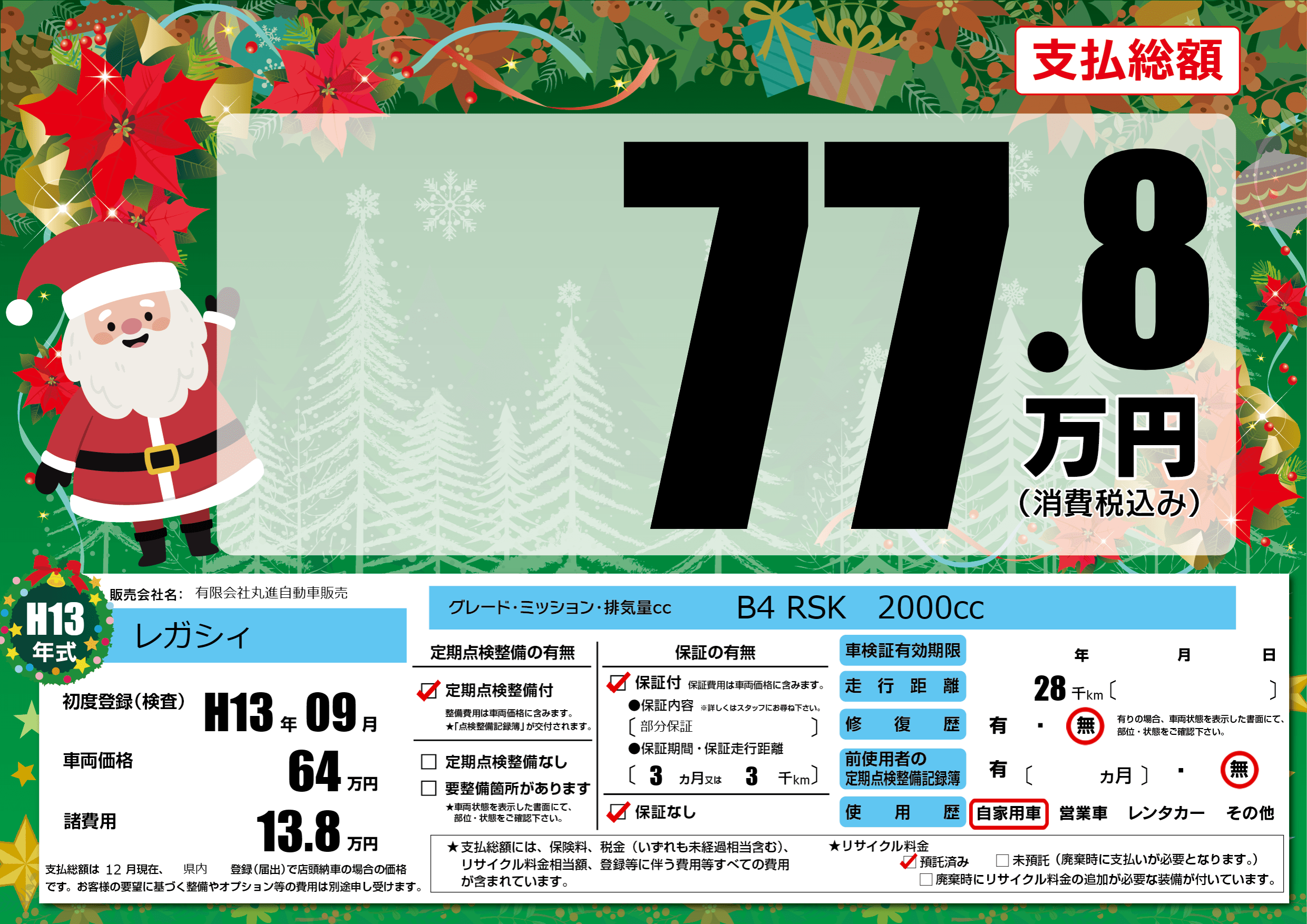 | 走行キロ | 2.8万km | 初年度登録 | H13年09月 |