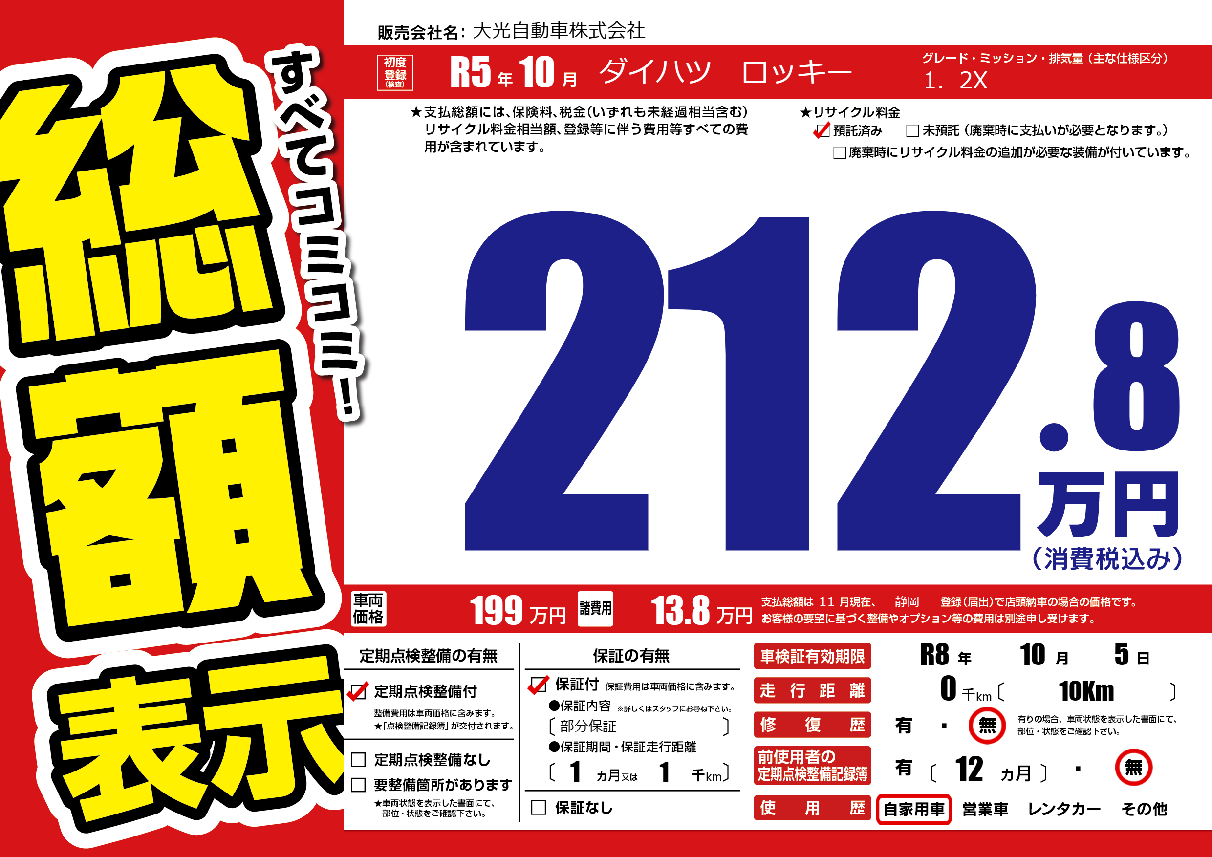| 定期点検整備 | 定期点検整備あり | ||