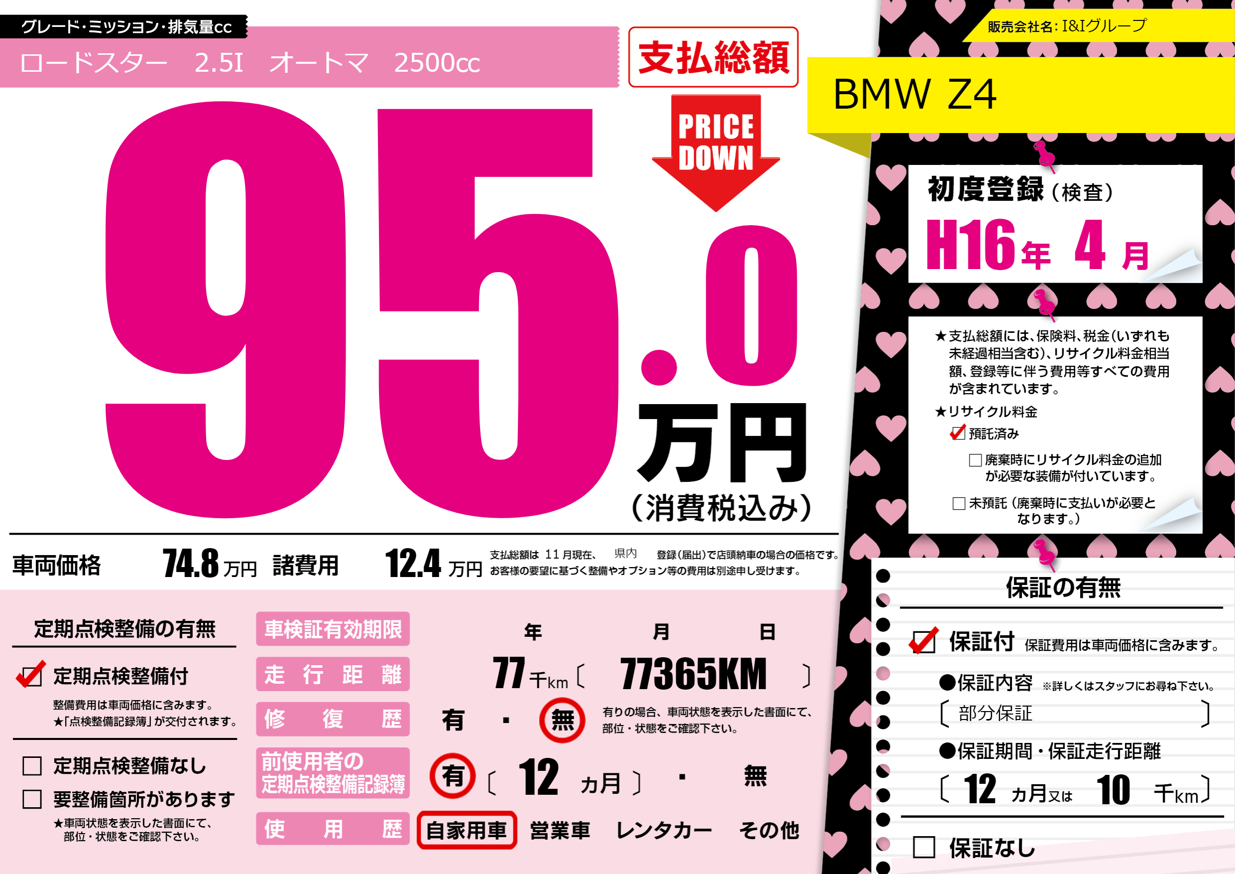 | 車名 | BMW Z4 | グレード ミッション 排気量 |