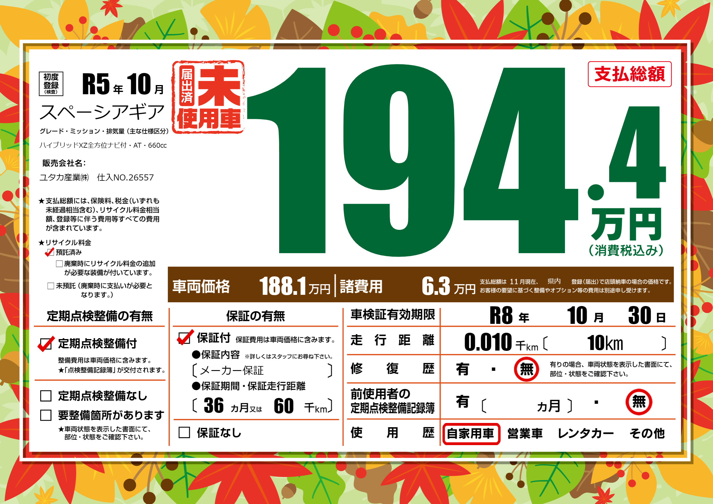 | 走行キロ | - | 初年度登録 | R5年10月 |