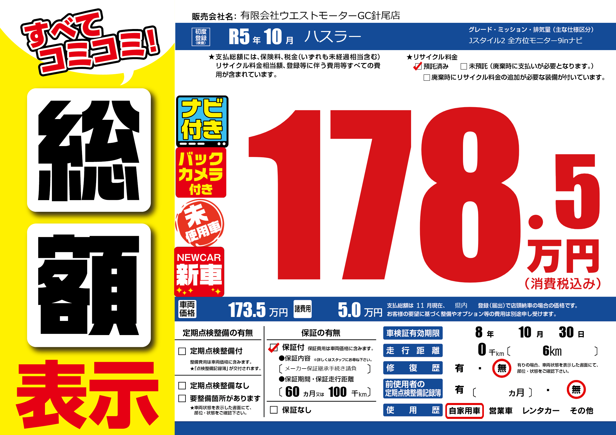 | 初年度登録 | R5年10月 | ||