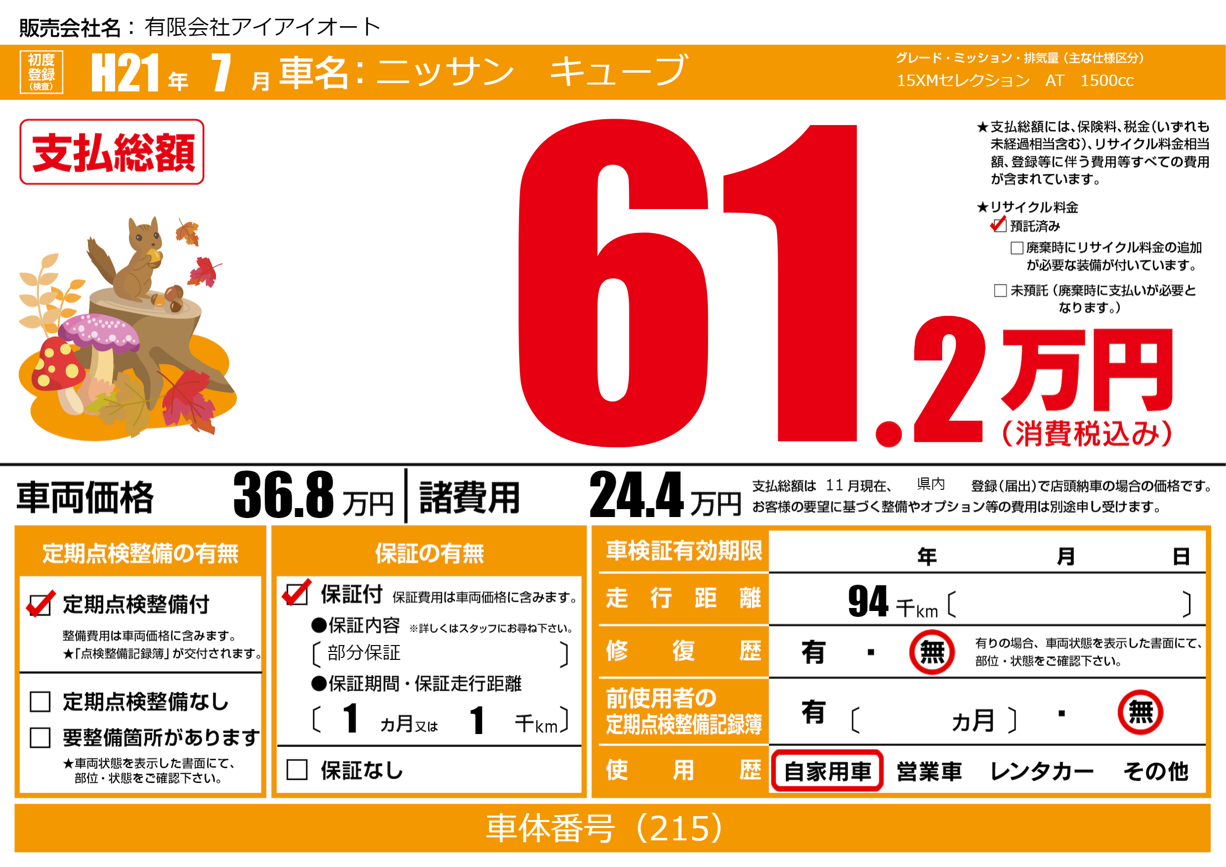| 走行キロ | 9.4万km | ||