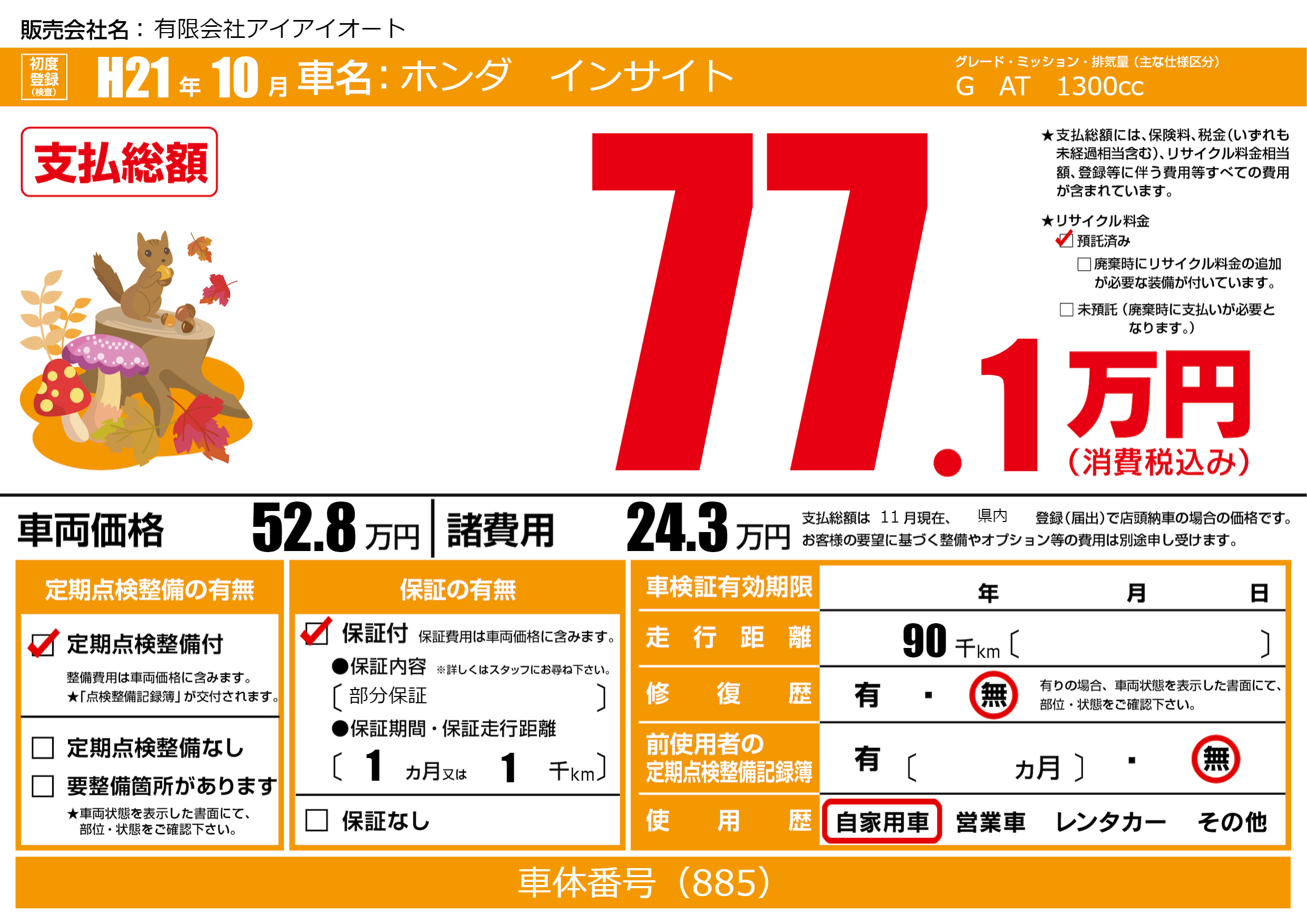 | 走行キロ | 9万km | ||