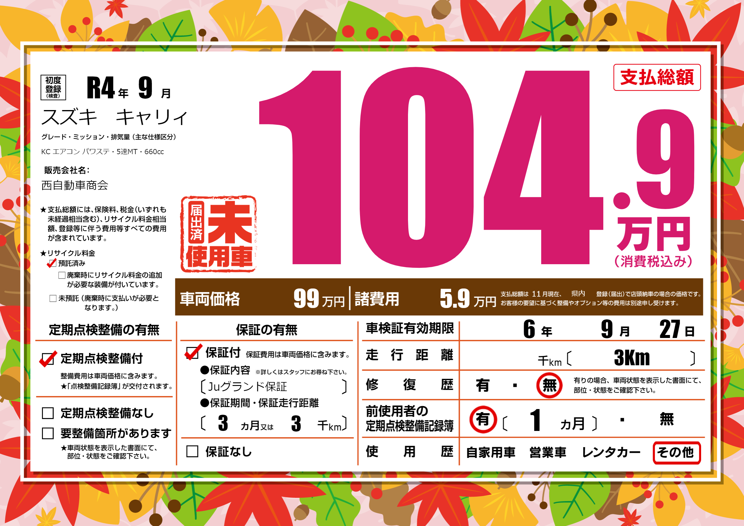 | 走行キロ | - | 初年度登録 | R4年9月 |