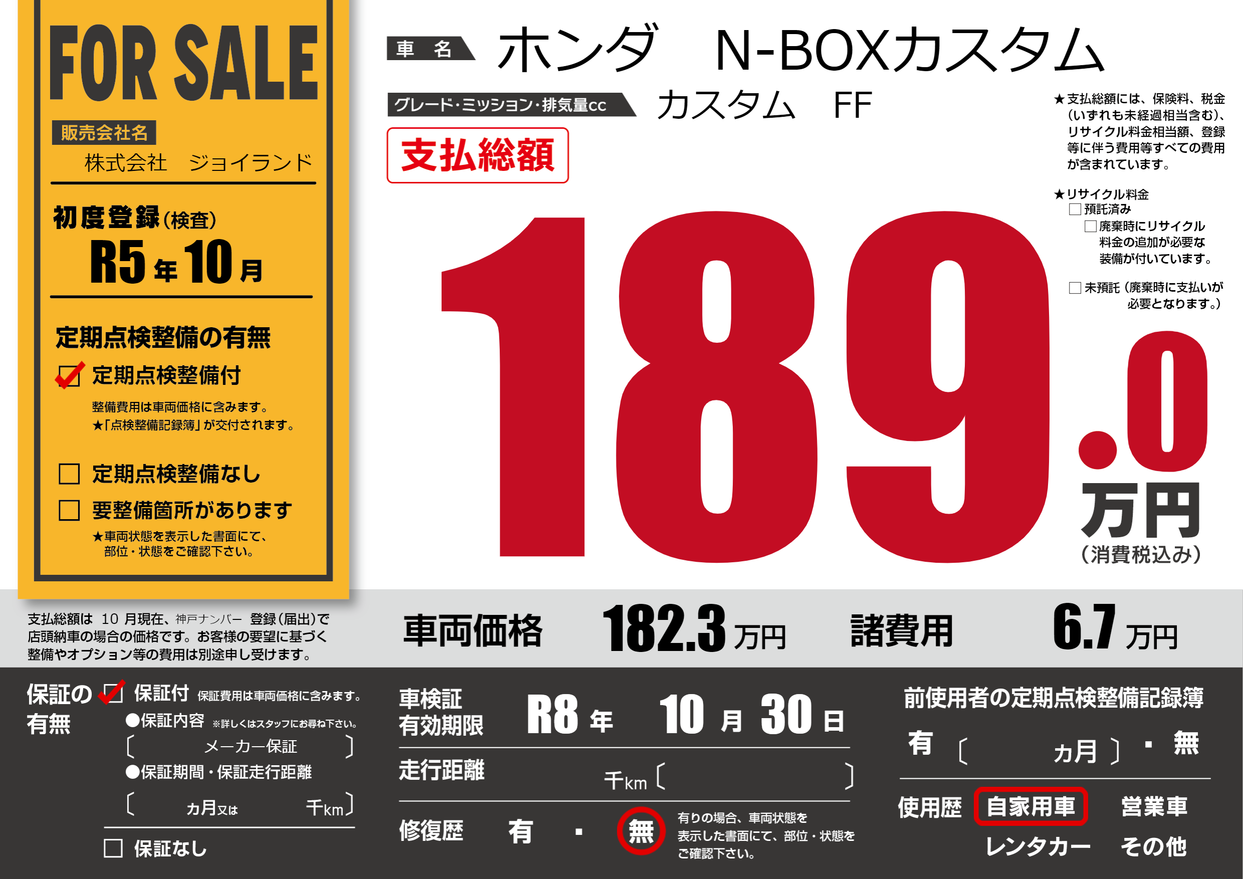 | 走行キロ | - | 初年度登録 | R5年10月 |
