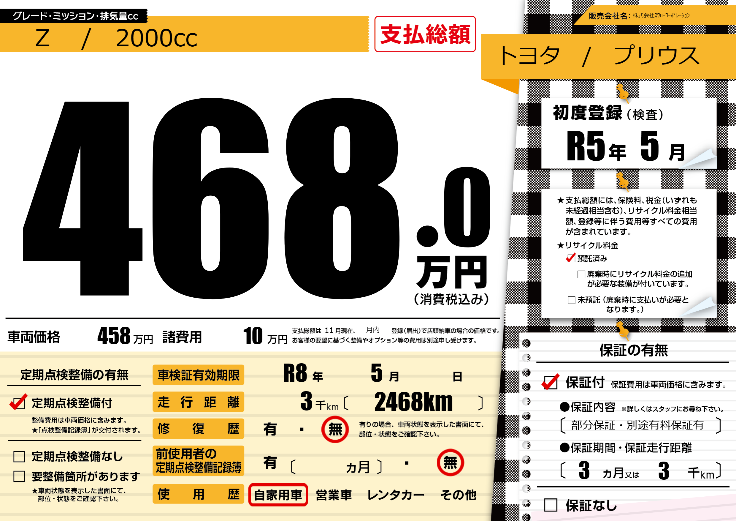 | 走行キロ | 0.3万km | 初年度登録 | R5年5月 |