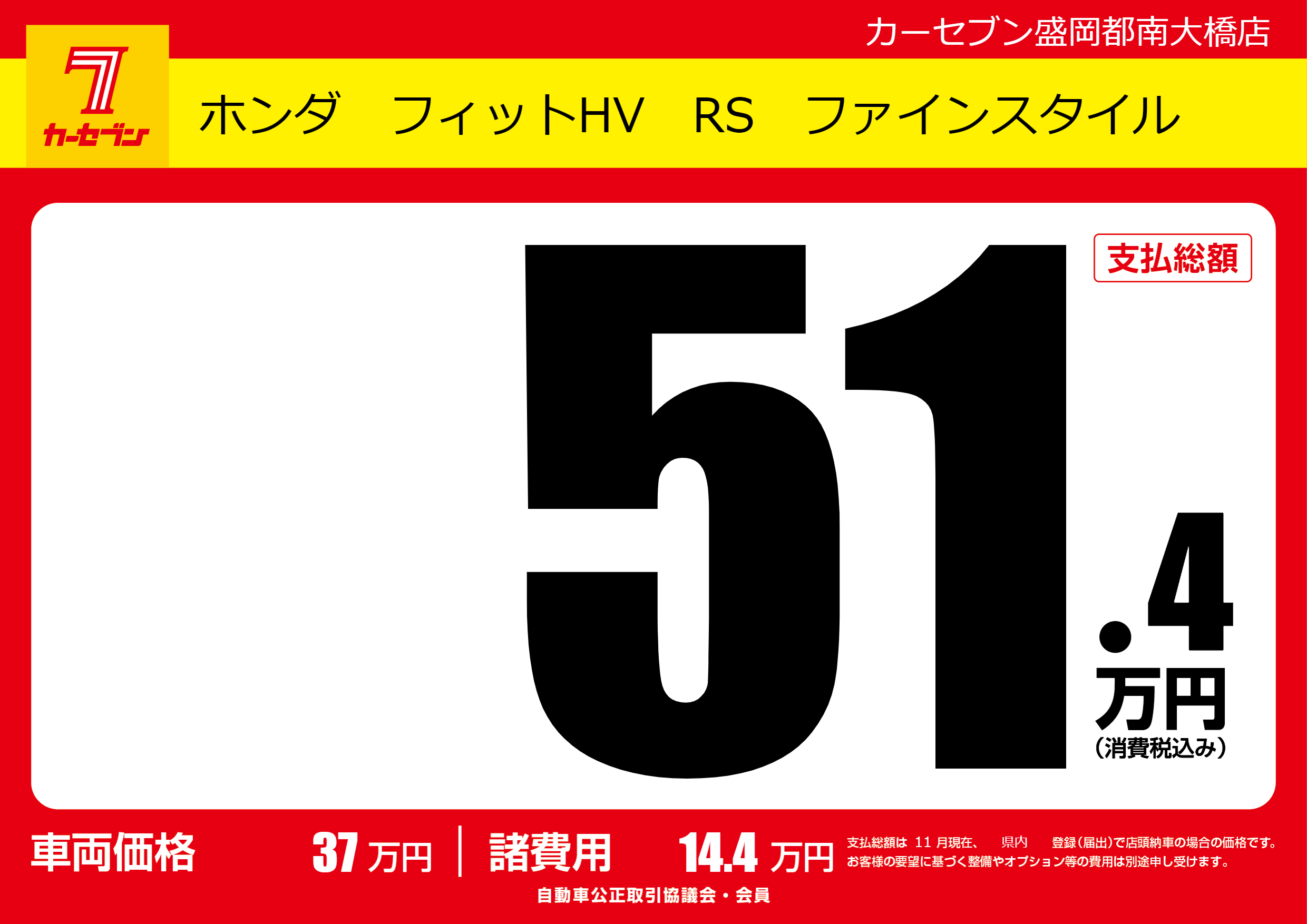 | 車名 | ホンダ フィットHV RS ファインスタイル | グレード ミッション 排気量 |