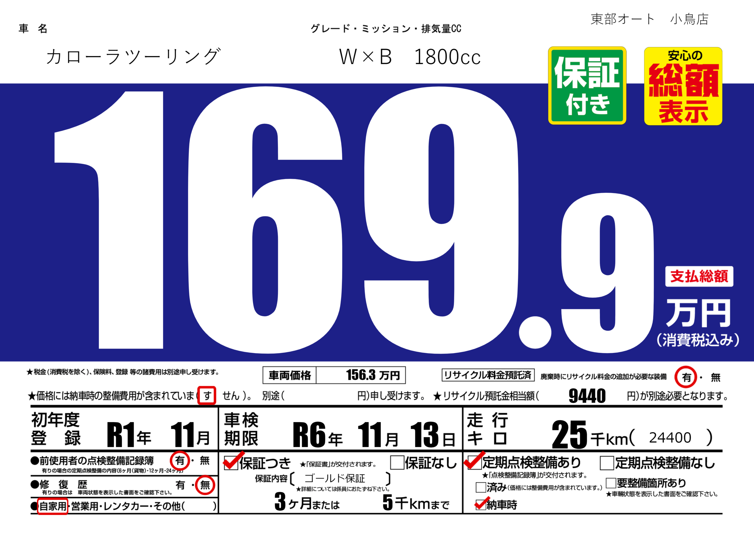 保証付き 保証内容( ゴールド保証) 3ヶ月または5千km |