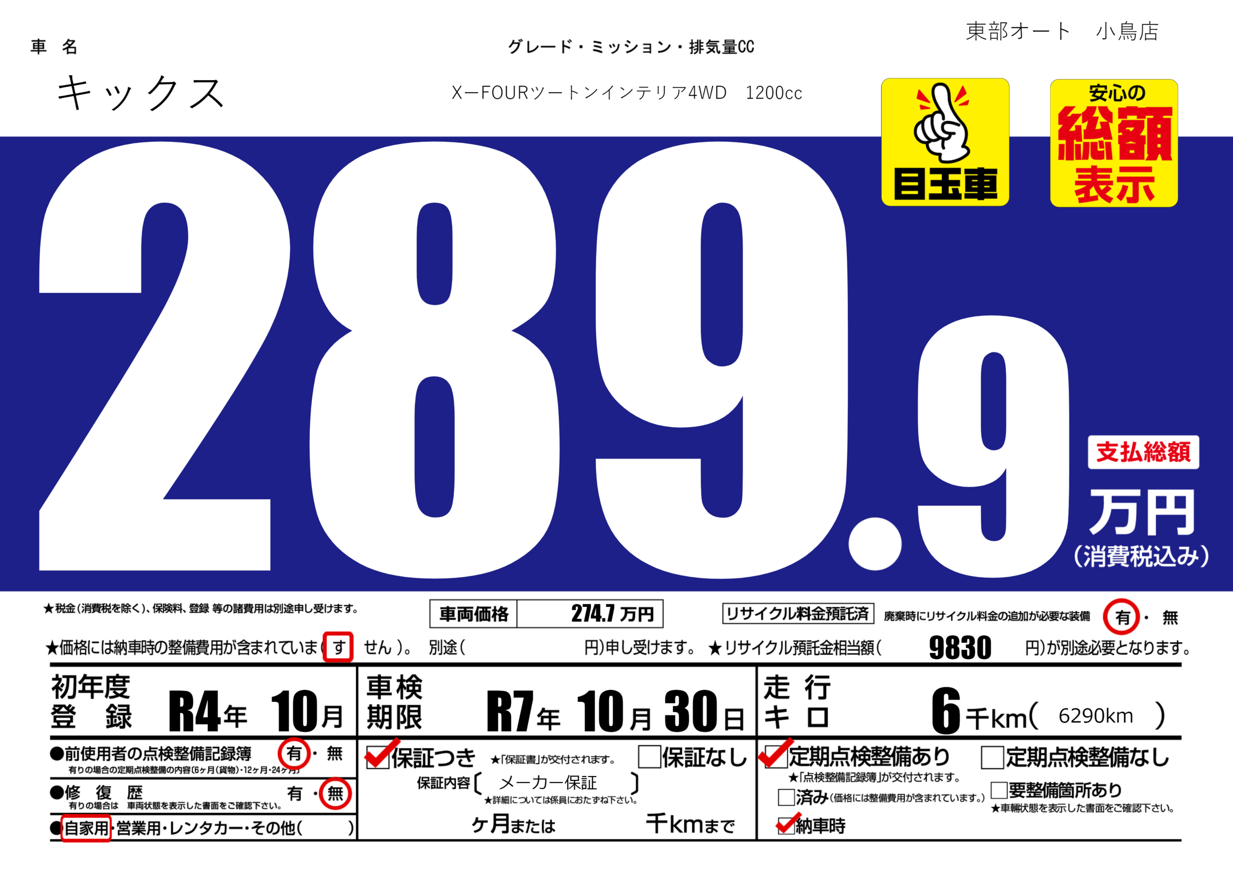 | 車検制限 | R7年 10月 30日 | ||