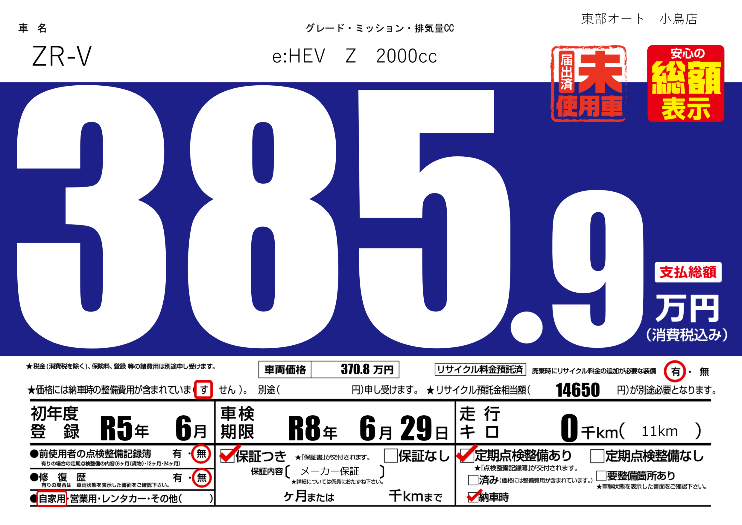 保証付き 保証内容( メーカー保証) ---ヶ月または()千kmまで |