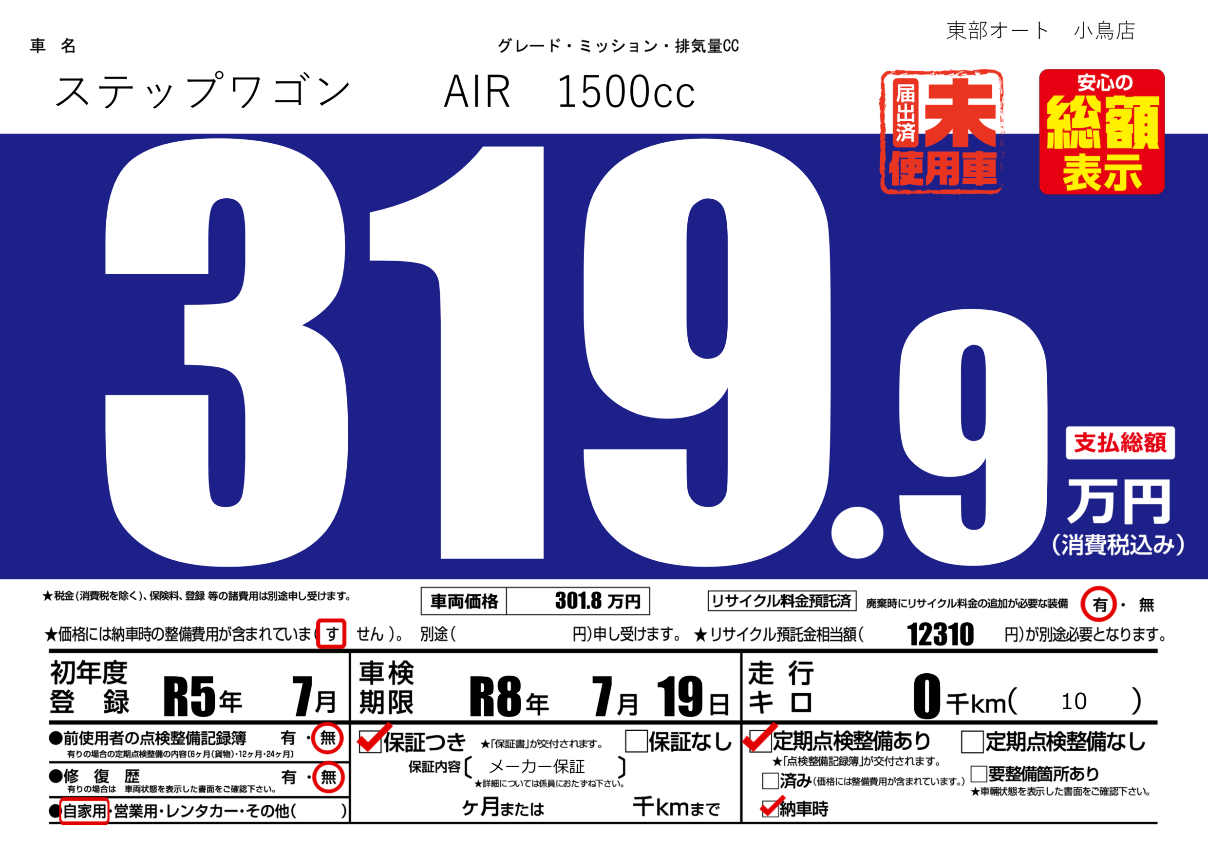 | 定期点検整備 | 定期点検整備あり 納車時あり | ||