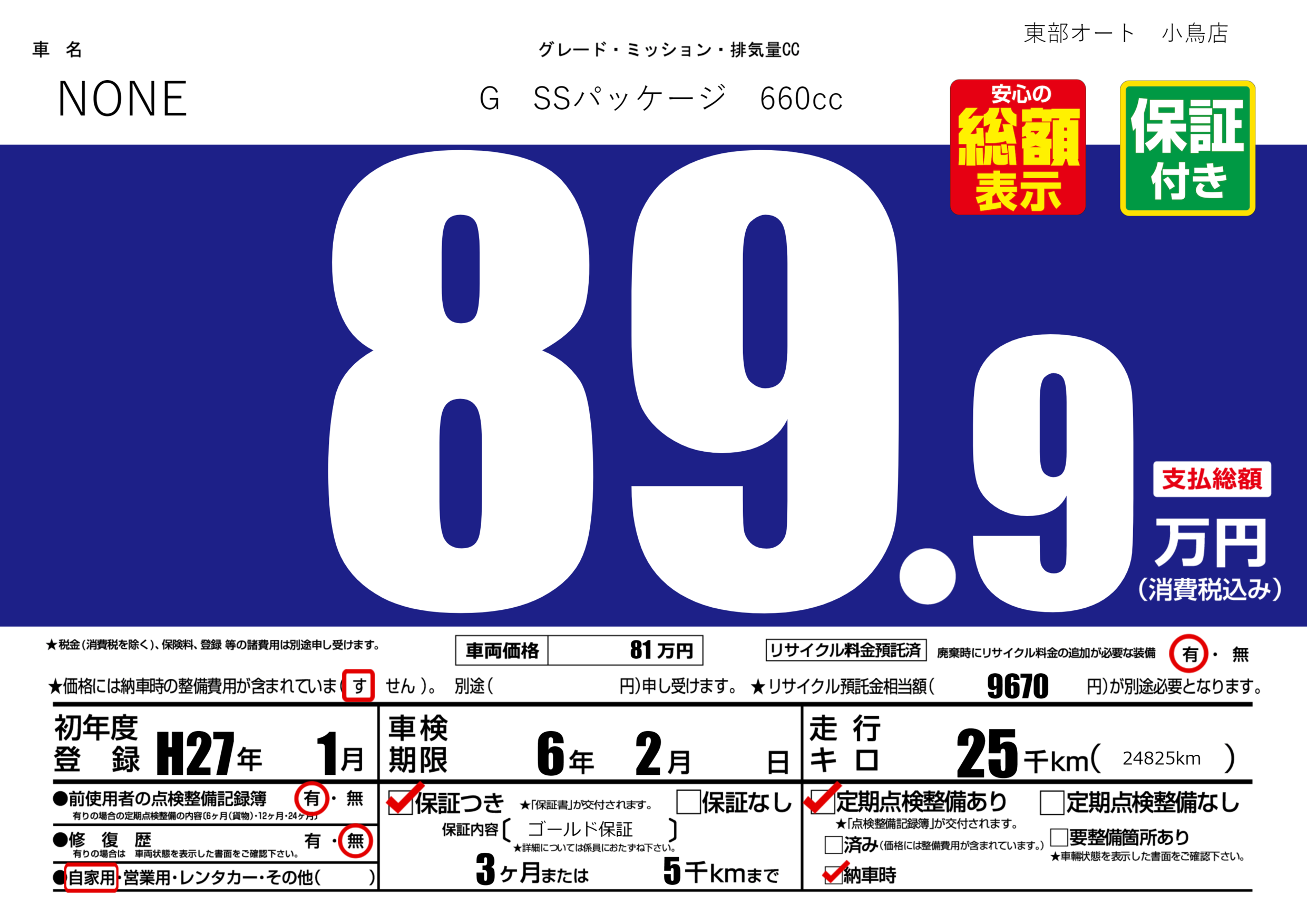| 定期点検整備 | 定期点検整備あり 納車時あり | ||