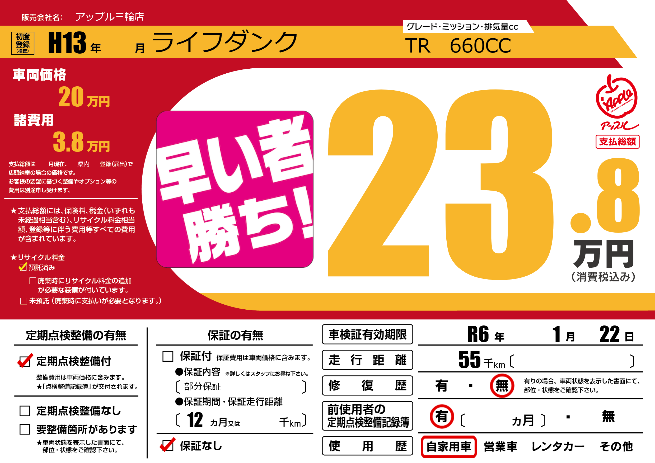 なし | 車検制限 | R6年1月22月 |