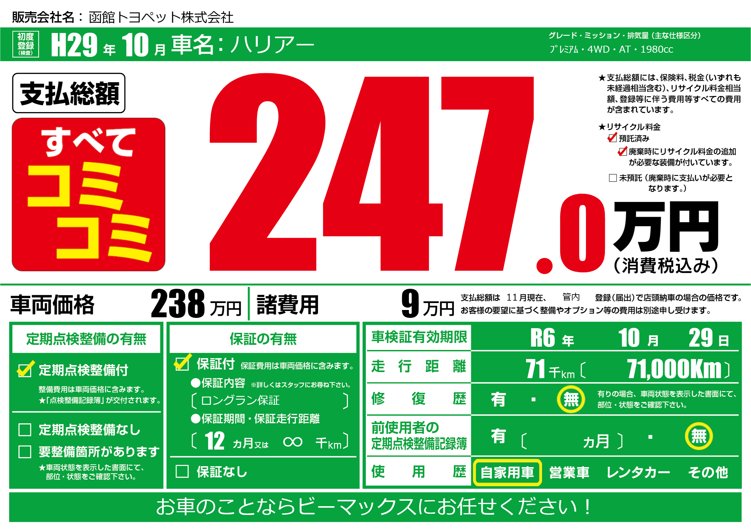 | 走行キロ | 7.1万km | 初年度登録 | H29年10月 |