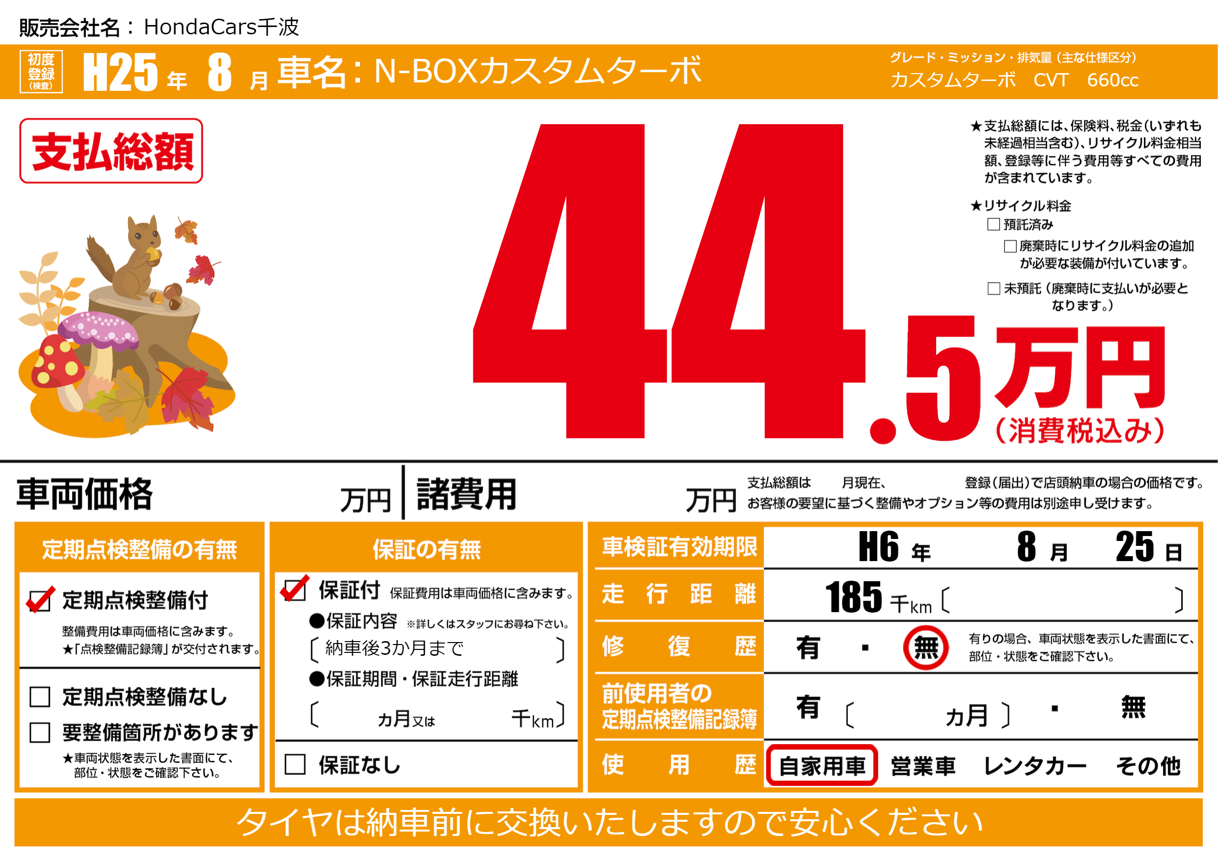 | 車名 | N-BOXカスタムターボ | グレード ミッション 排気量 |
