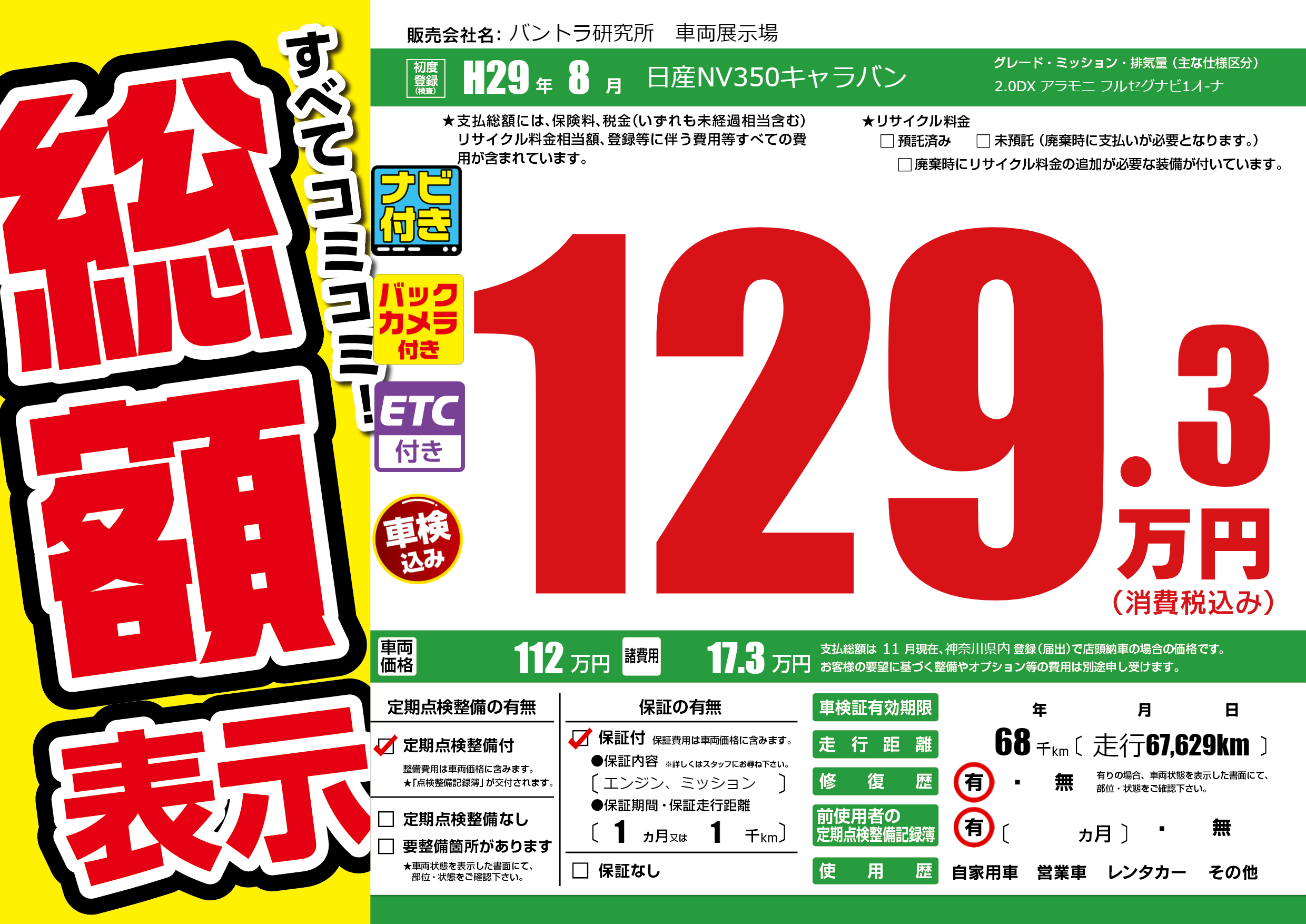 | 車名 | 日産NV350キャラバン | グレード ミッション 排気量 |
