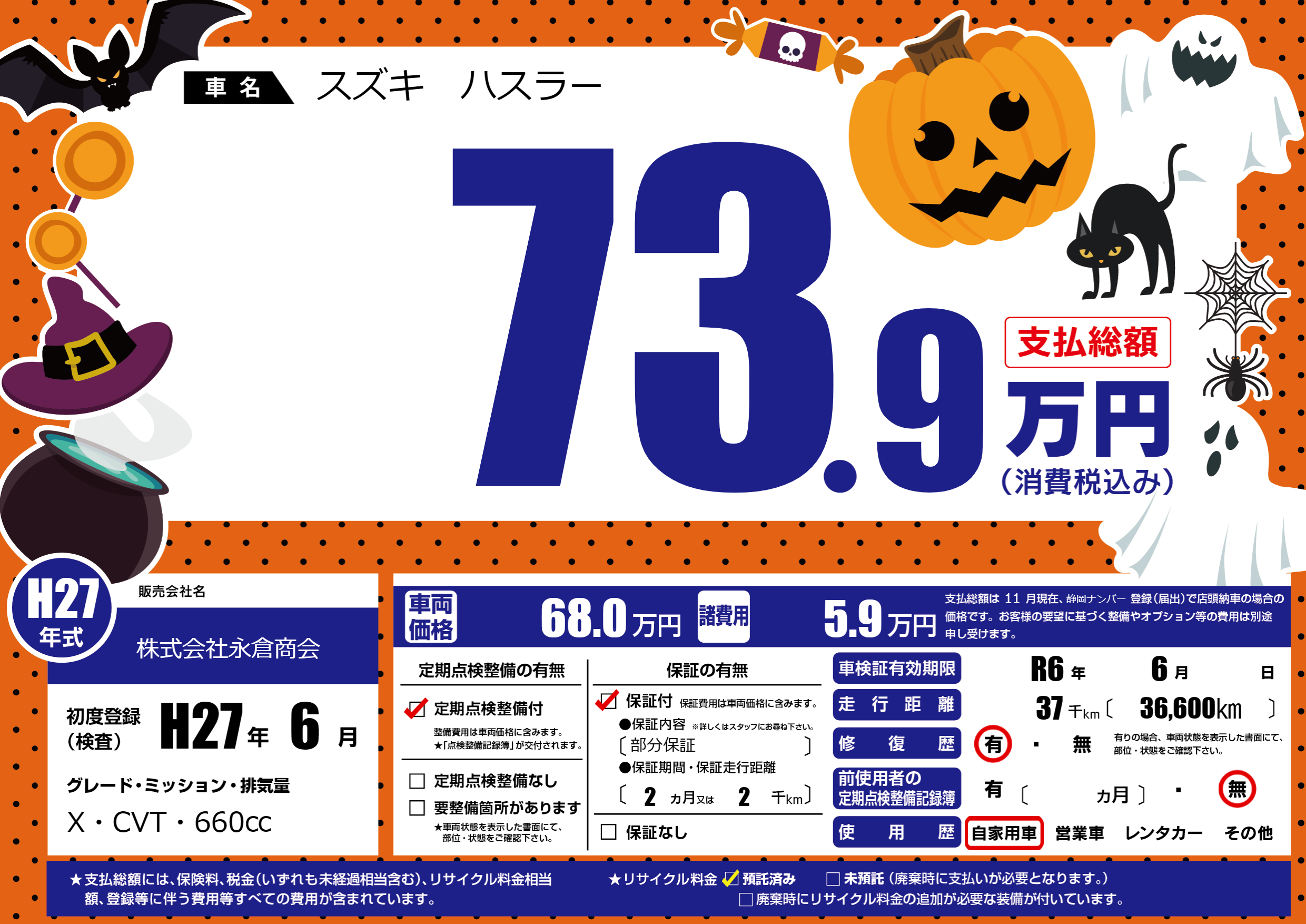なし | 車検制限 | R6年6月---月 |