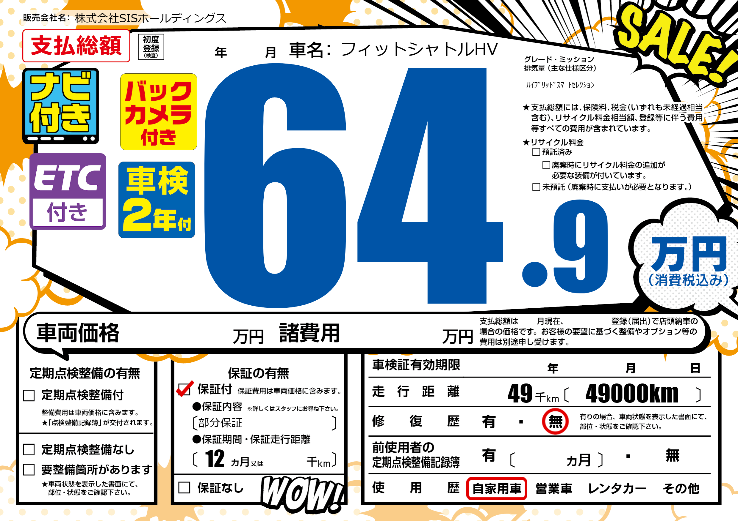 | 納車時の 整備費用 |