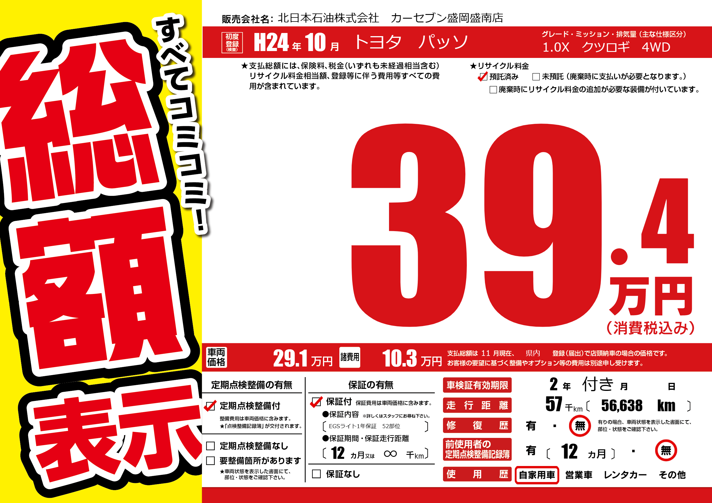 保証付き 保証内容(EGSライト1年保証 52部位) 12ヶ月または(∞)千kmまで |