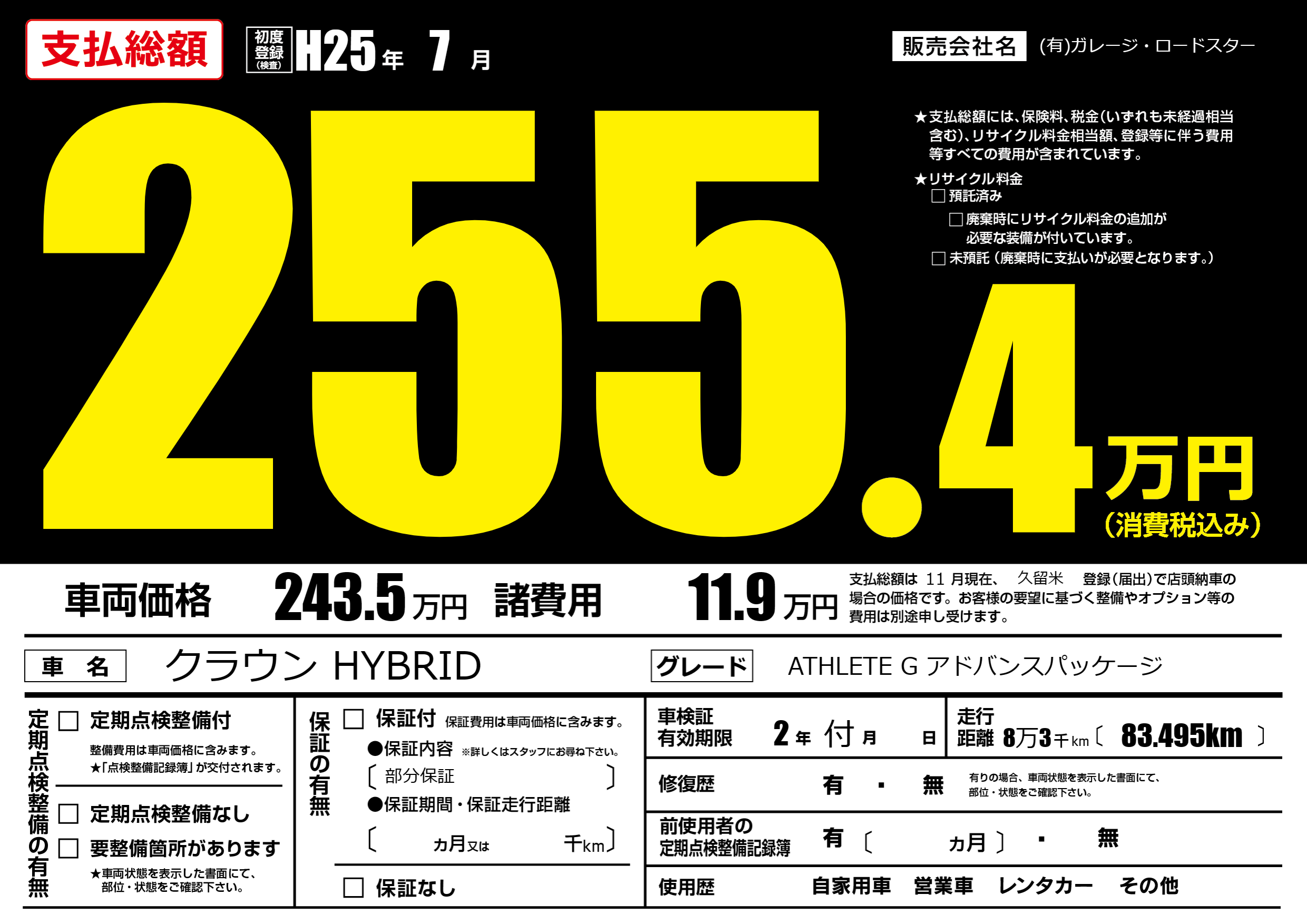 | 車名 | クラウン HYBRID | グレード ミッション 排気量 |