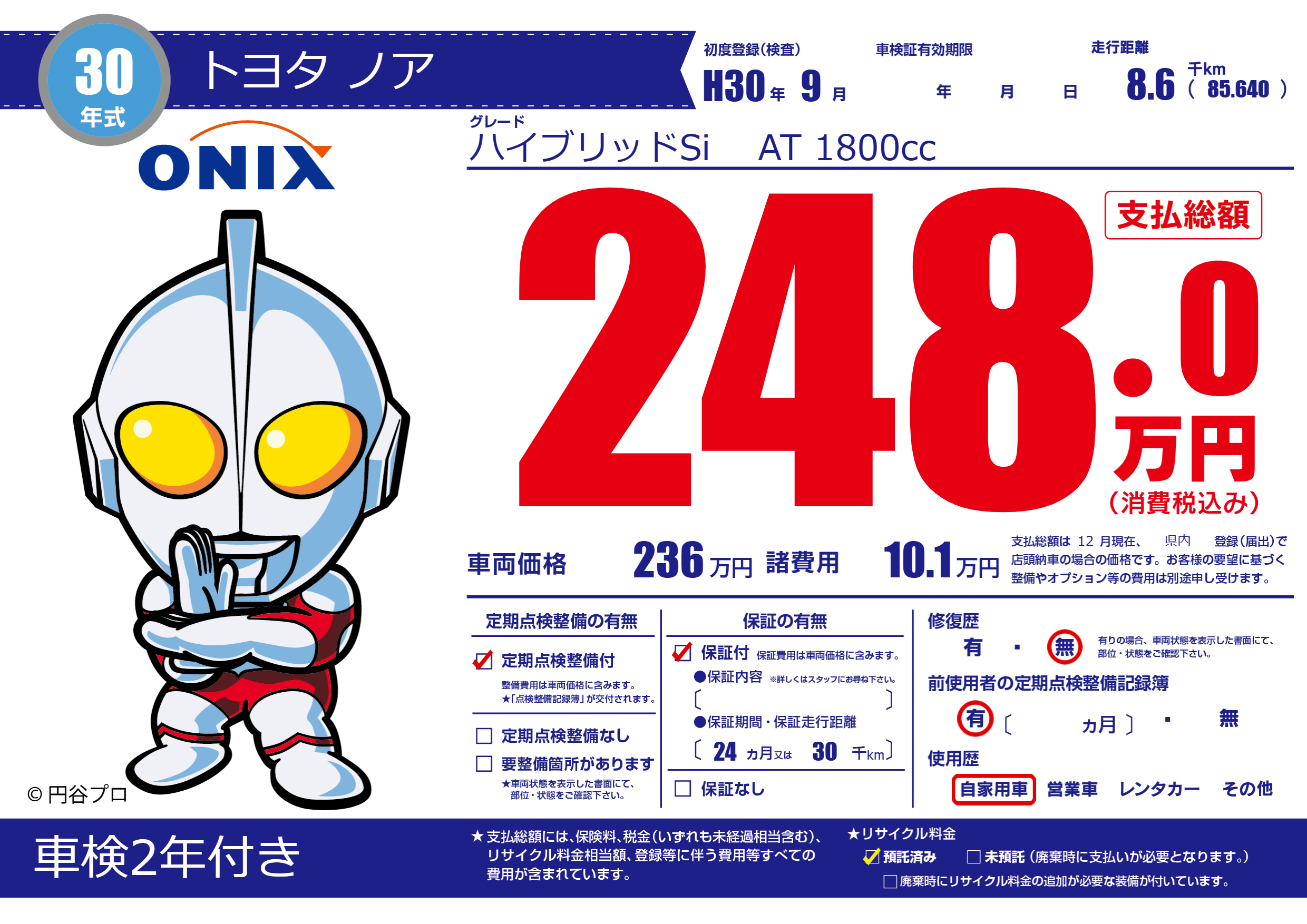 | 走行キロ | 0.8万km | 初年度登録 | H30年9月 |
