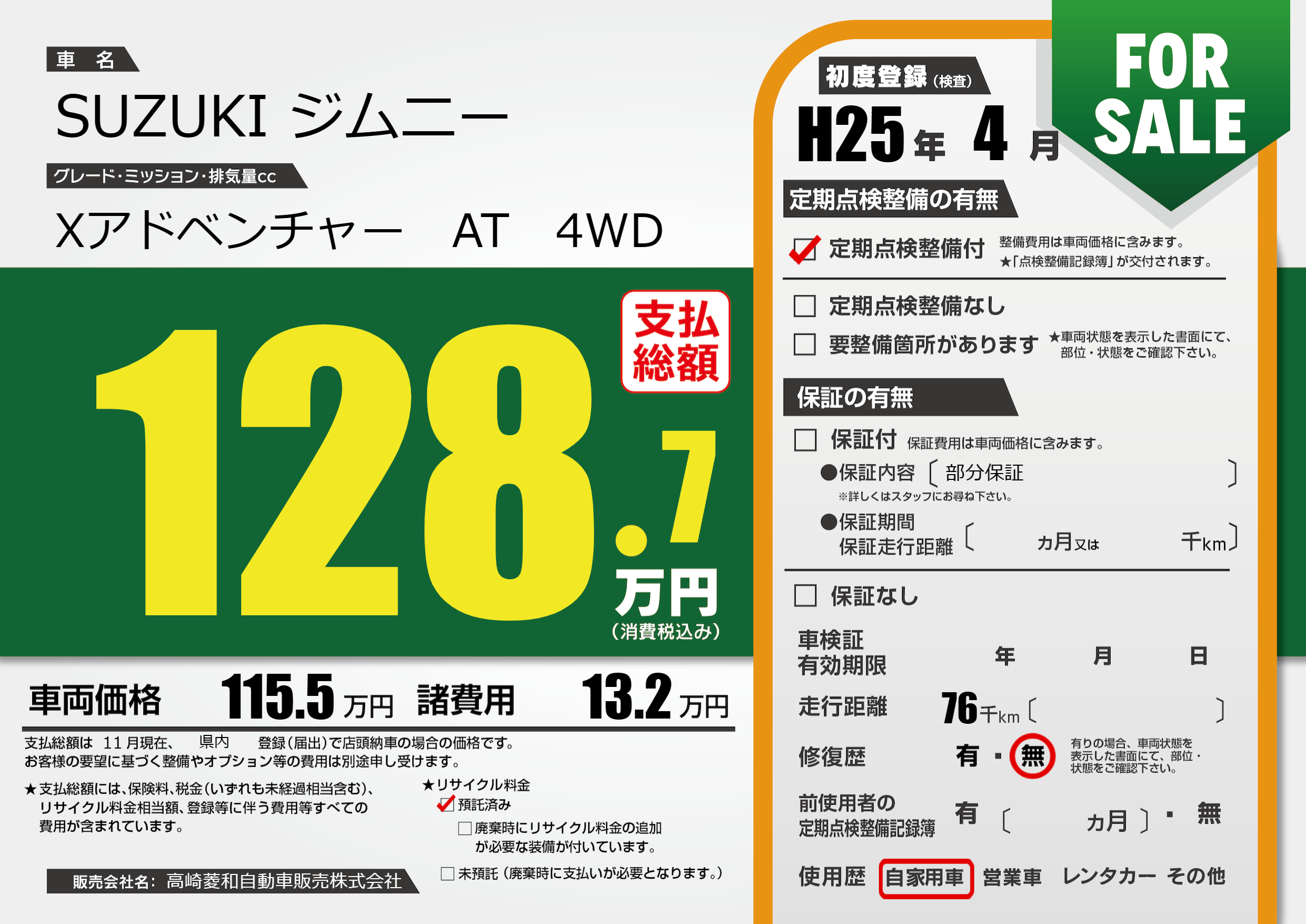 | 走行キロ | 7.6万km | ||
