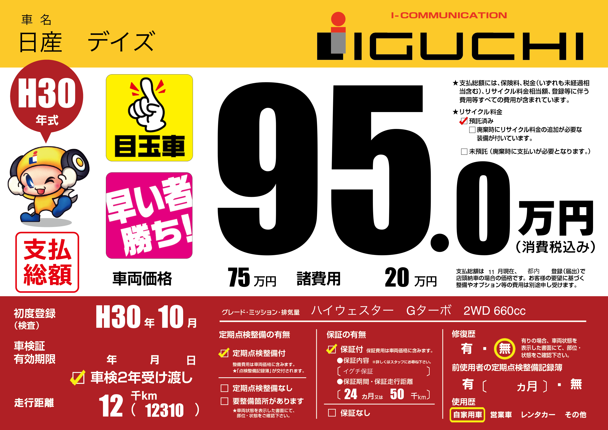 保証付き 保証内容(イグチ保証) 24ヶ月または(50)千kmまで |