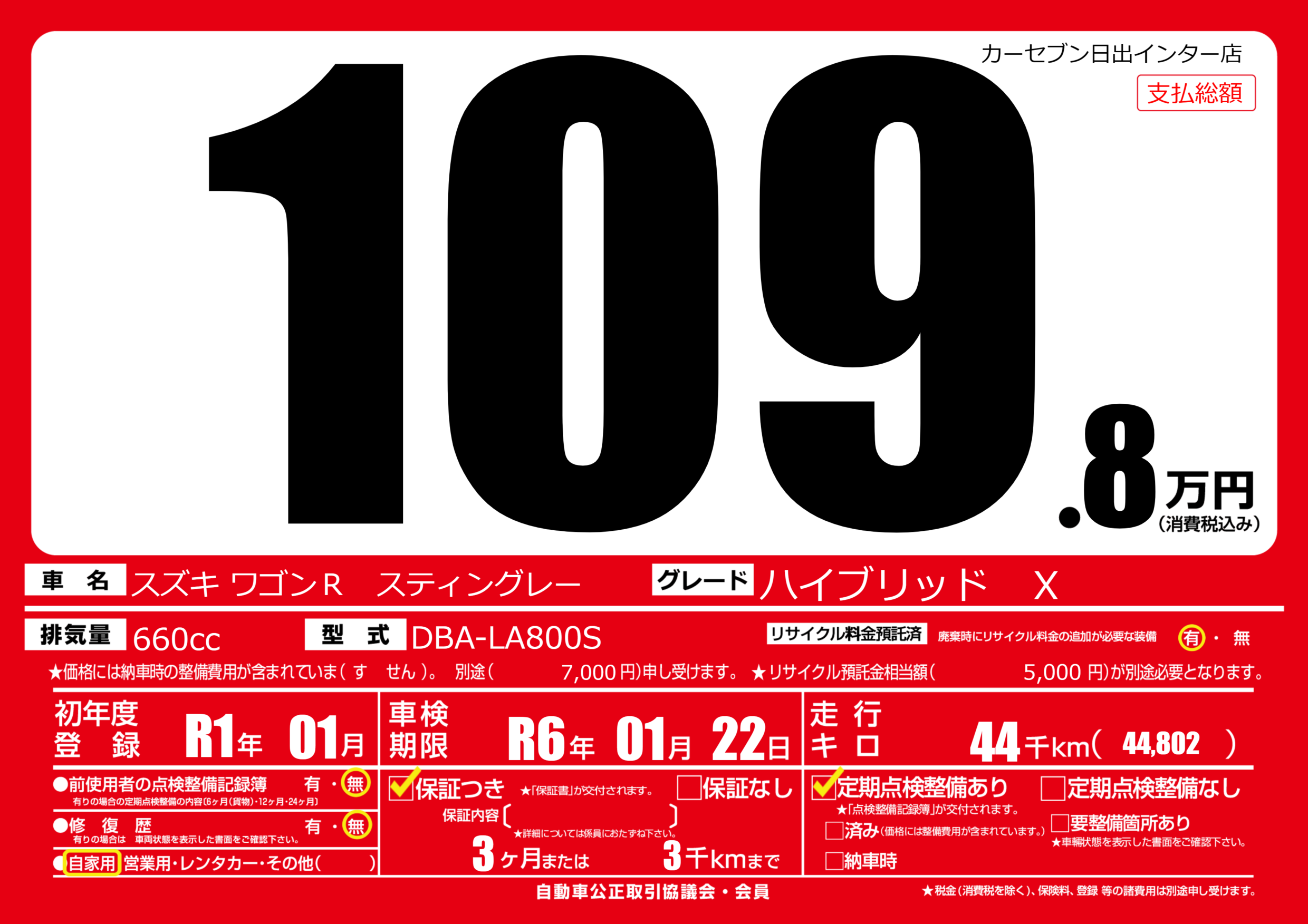保証付き 保証内容(---) 3ヶ月または(3)千kmまで |