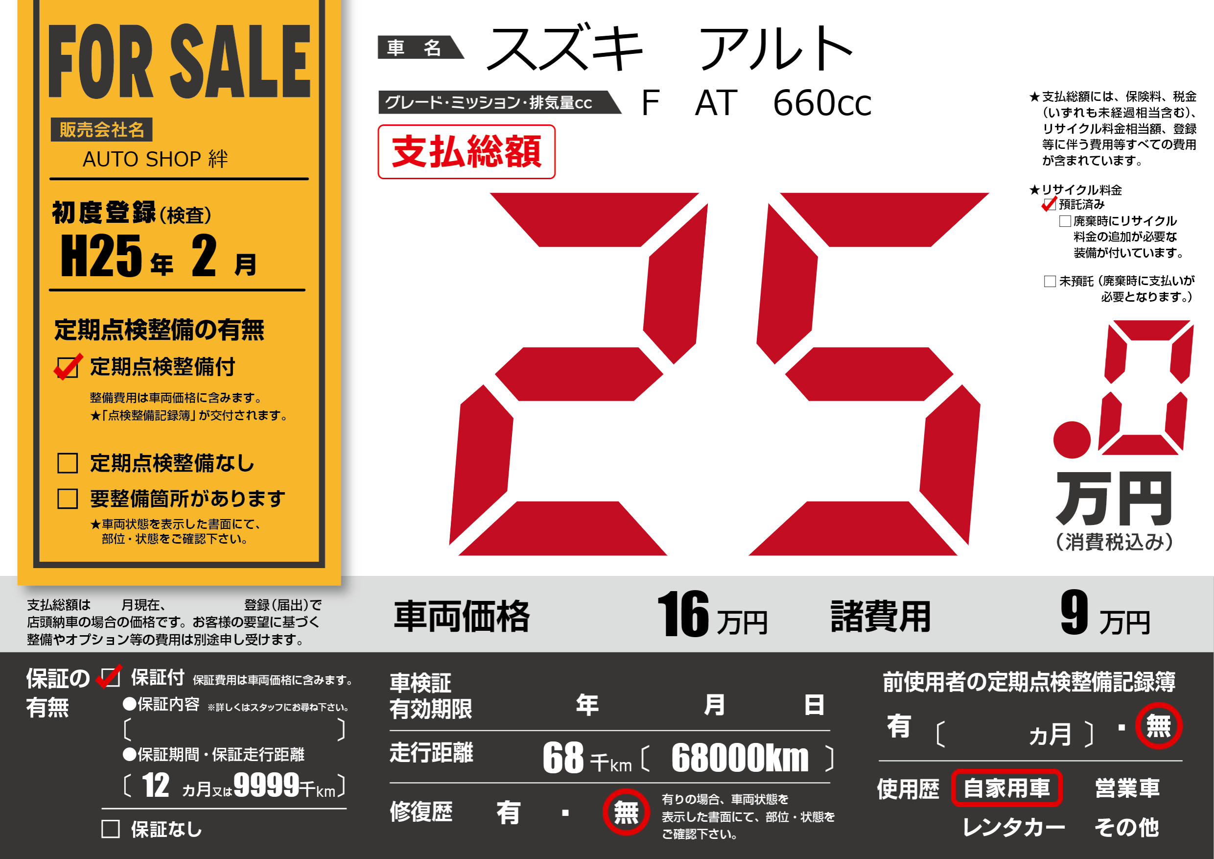 | 車名 | スズキ アルト | グレード ミッション 排気量 |