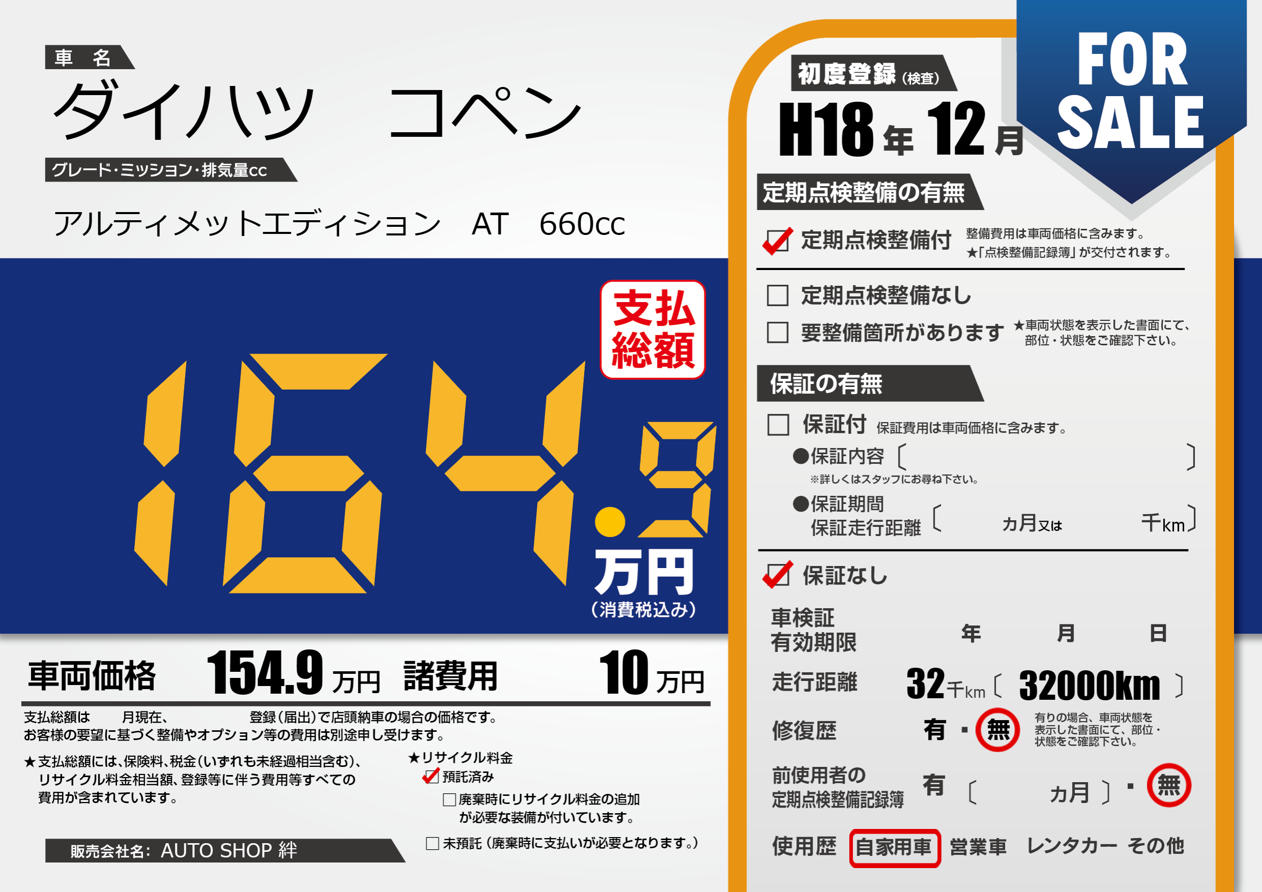 | 車検制限 | - 年 - 月 - 日 | ||