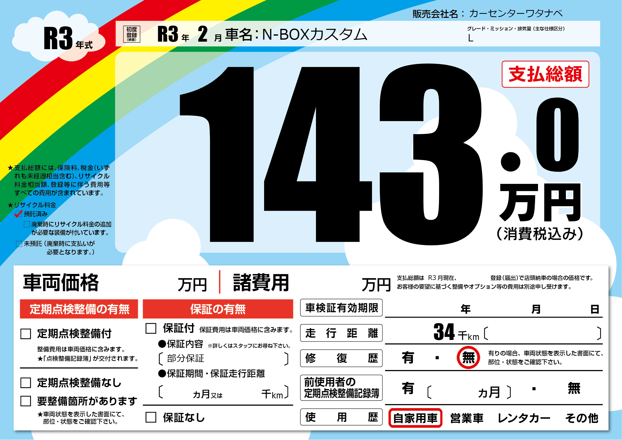| 車名 | N-BOXカスタム | グレード ミッション 排気量 |