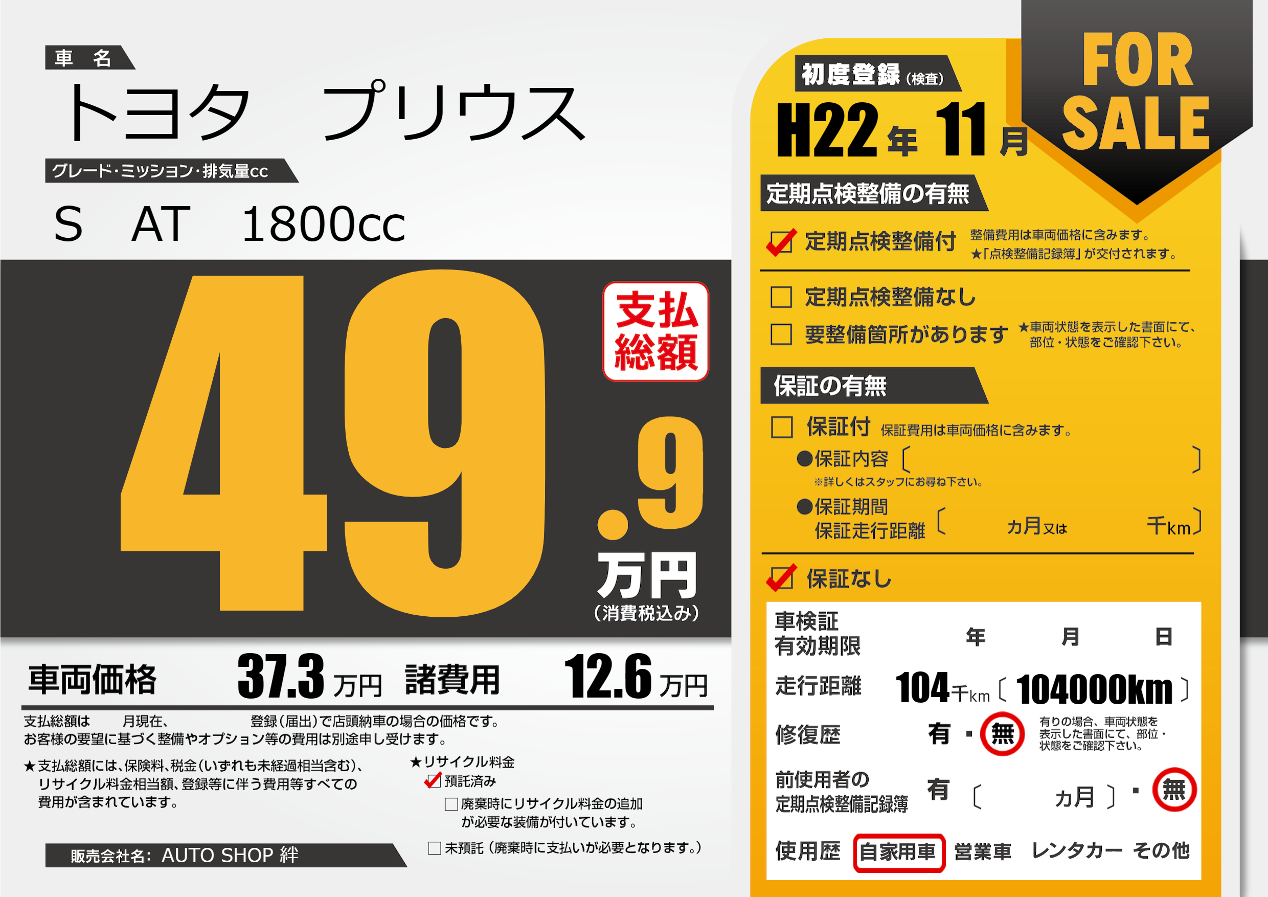 | 車検制限 | - 年 - 月 - 日 | ||