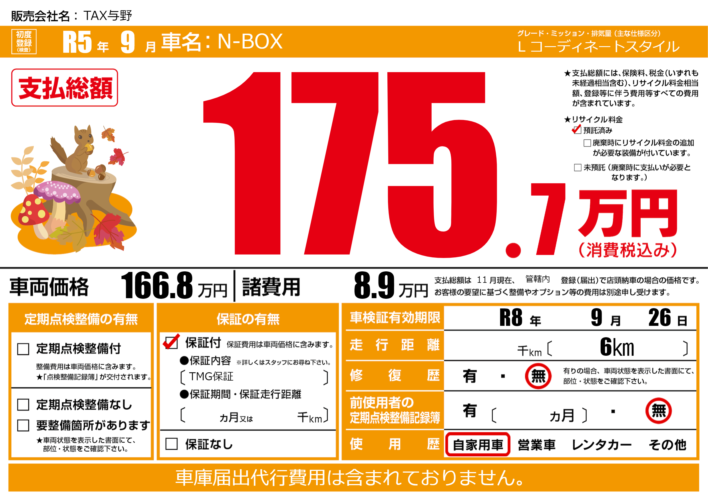 なし | 車検制限 | R8年9月26月 |