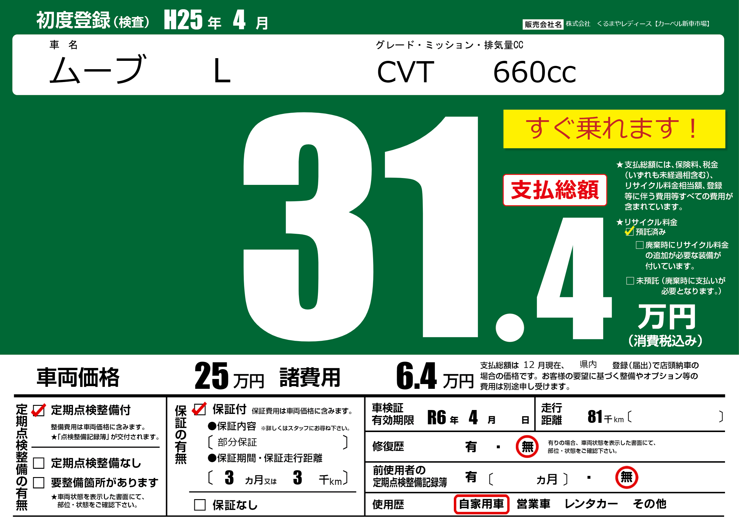 | 車名 | ムーブ L | グレード ミッション 排気量 |