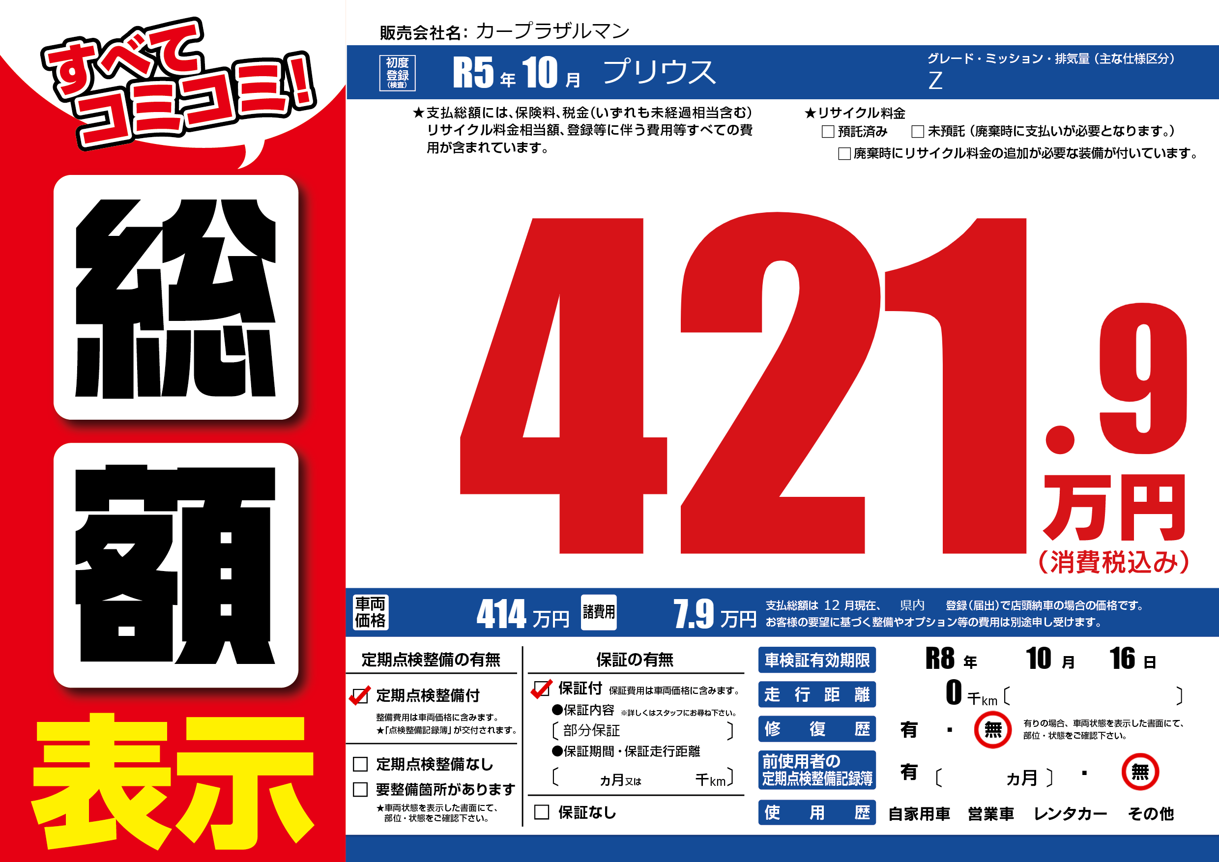 | 定期点検整備 | 定期点検整備あり | ||