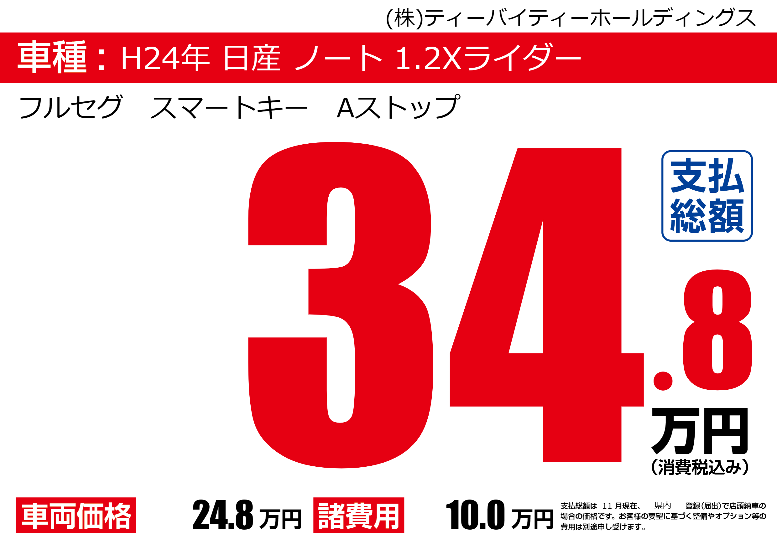 | 車名 | H24年 日産 ノート 1.2Xライダー | グレード ミッション 排気量 |