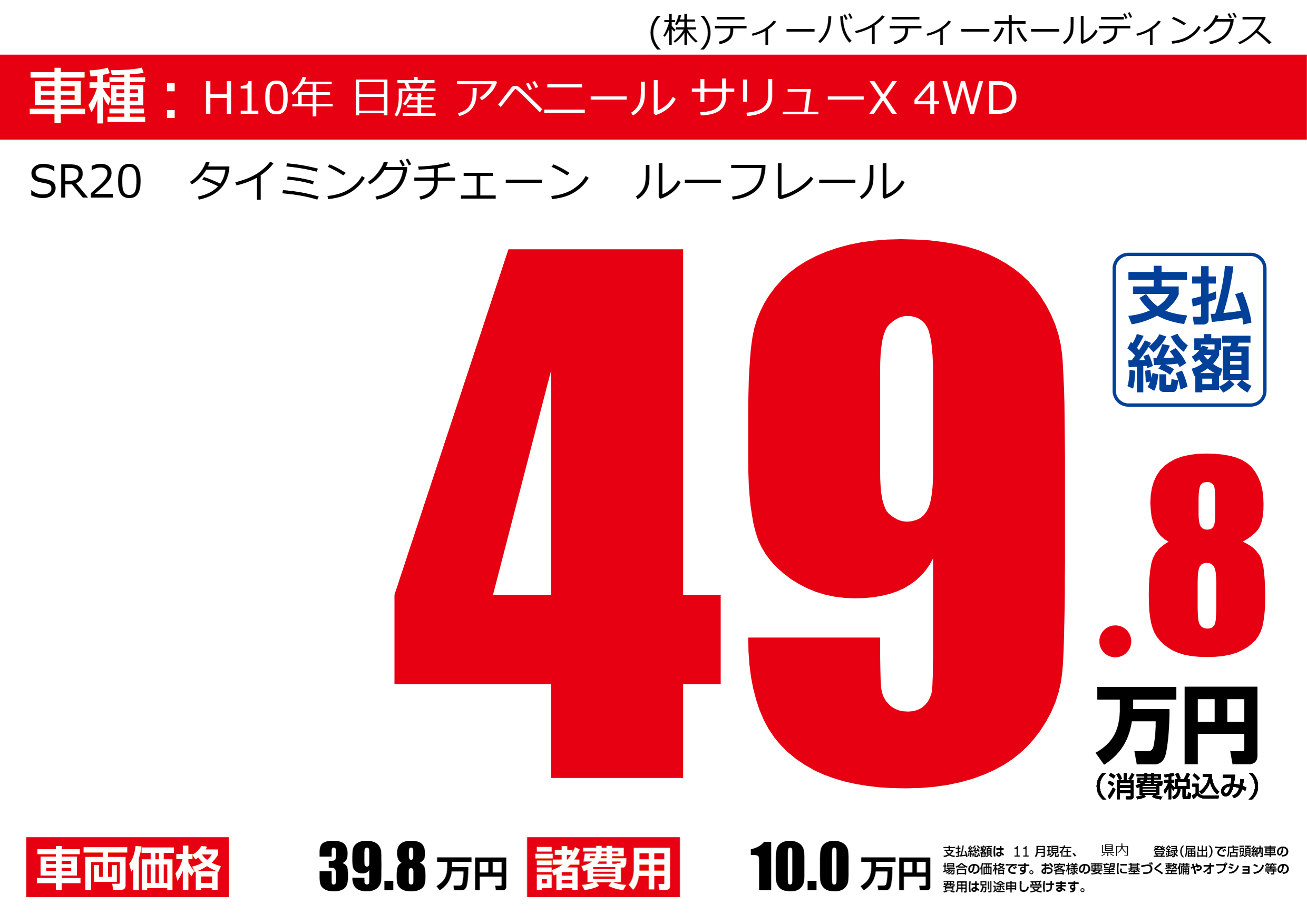 | 車名 | H10年 日産 アベニール サリューX 4WD | グレード ミッション 排気量 |