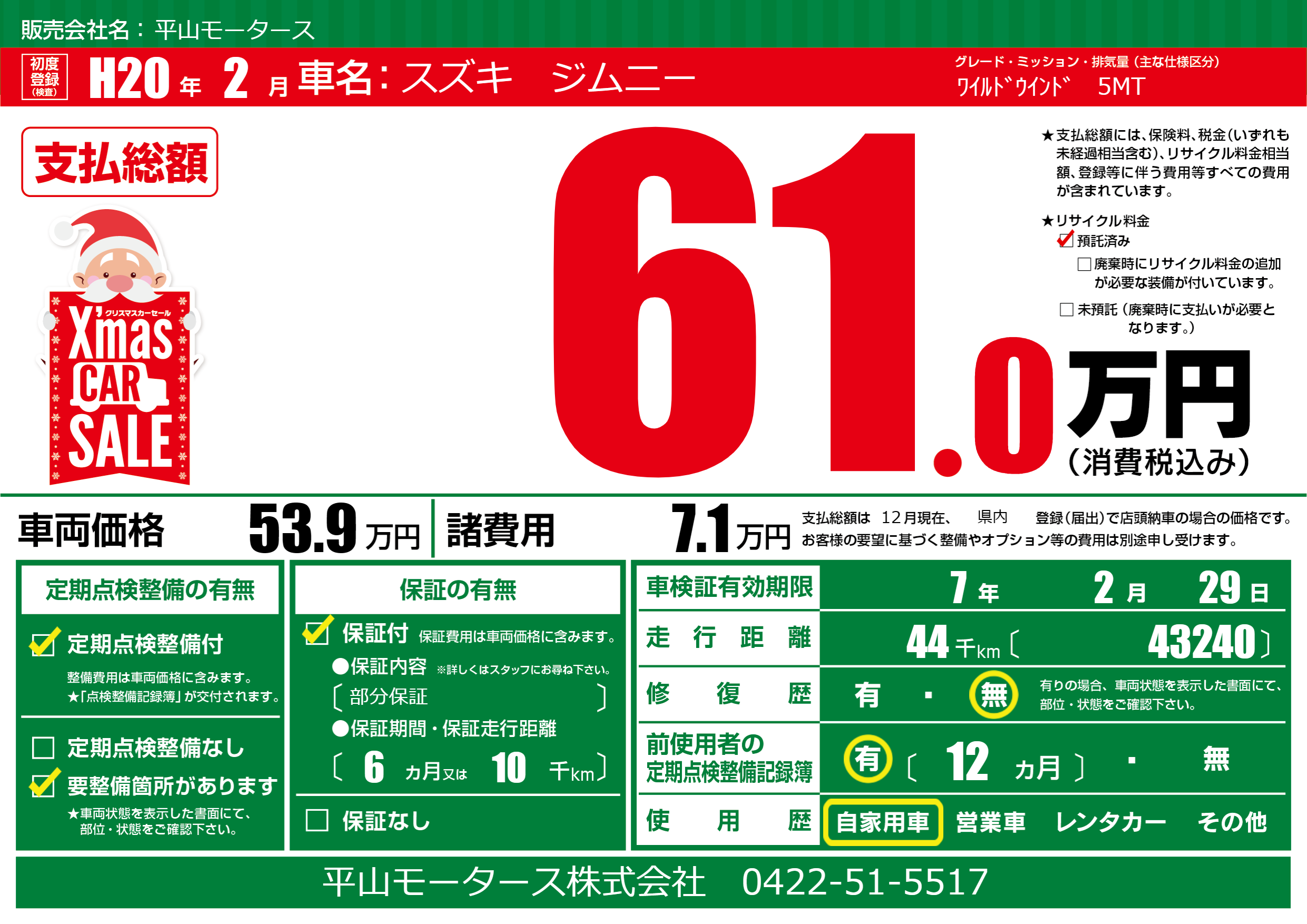 | 車検制限 | 7年 2月 29日 | ||