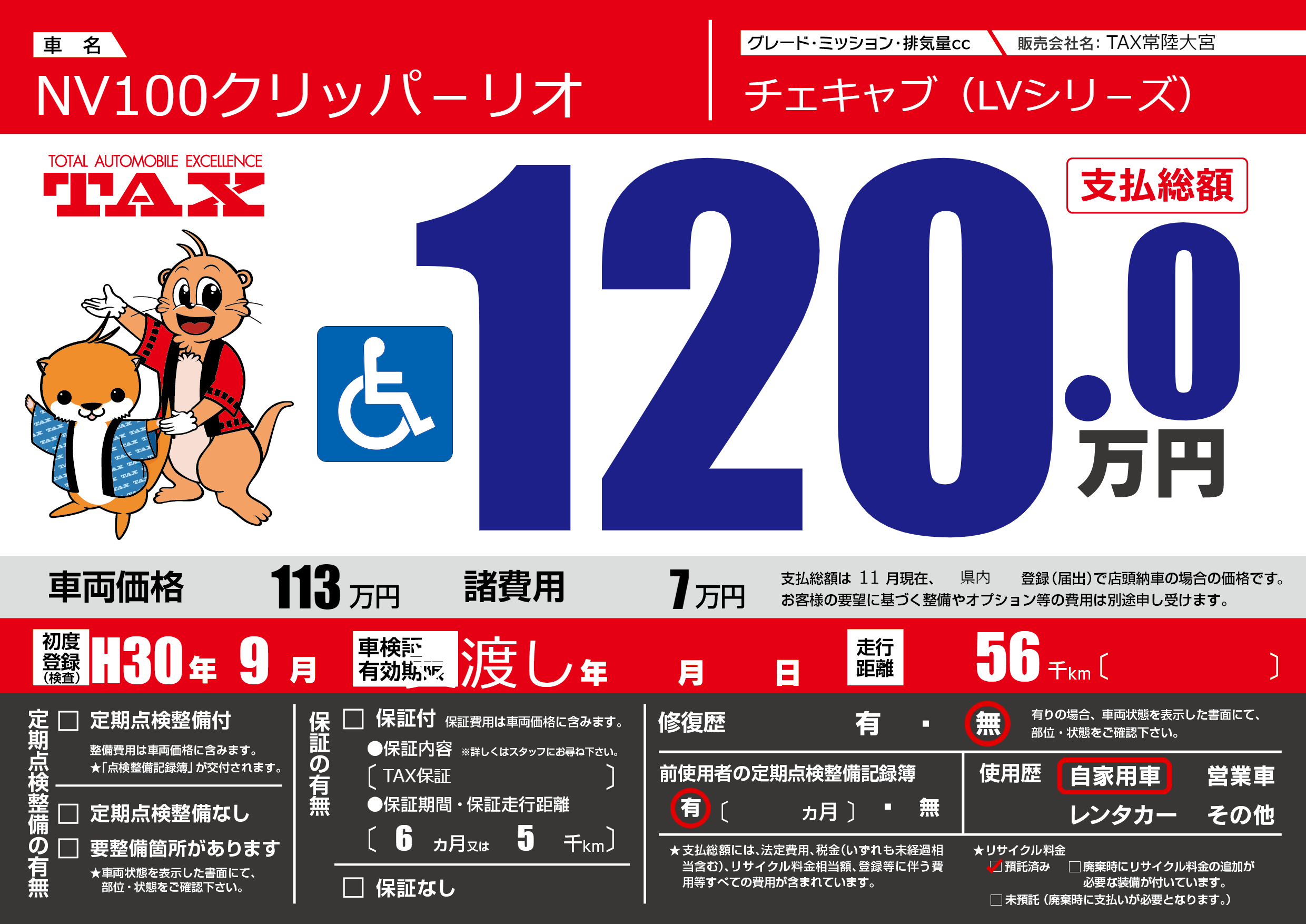 保証なし 保証内容(TAX保証) 6ヶ月または(5)千kmまで |
