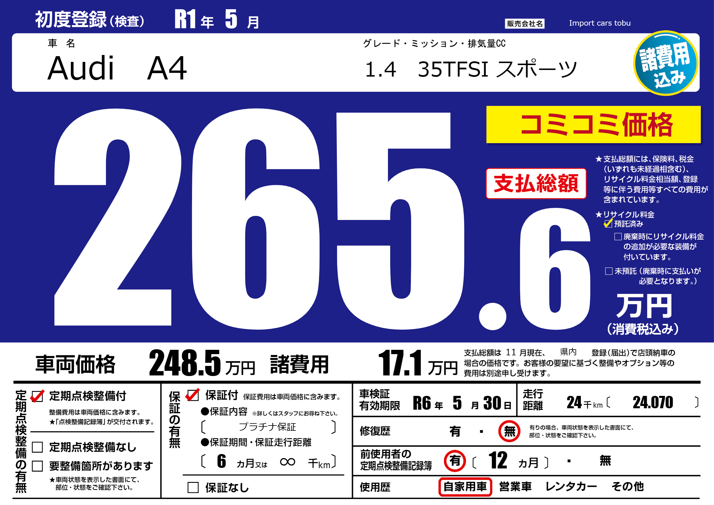 なし | 車検制限 | R6年5月30月 |