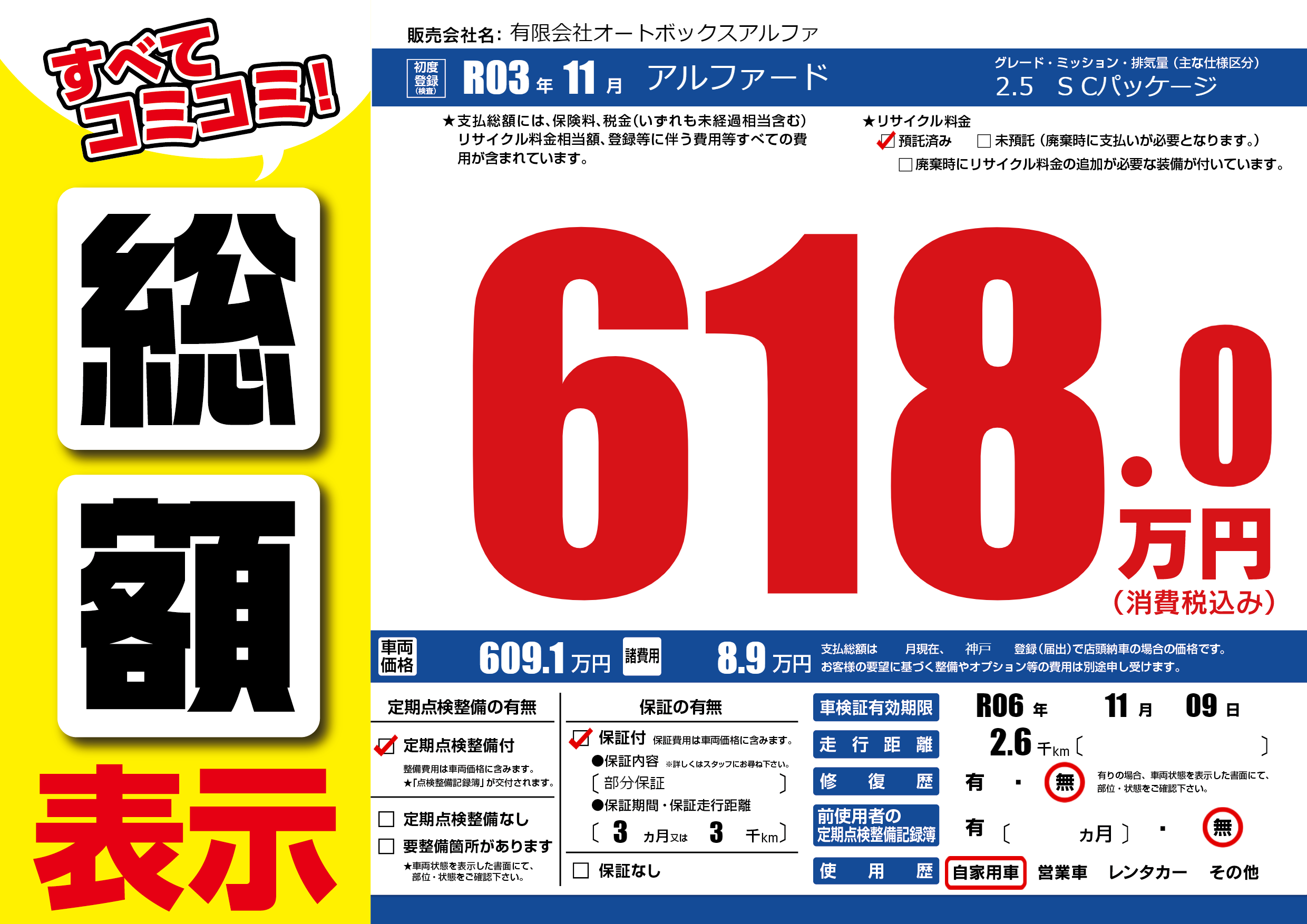 | 車名 | アルファード | グレード ミッション 排気量 |