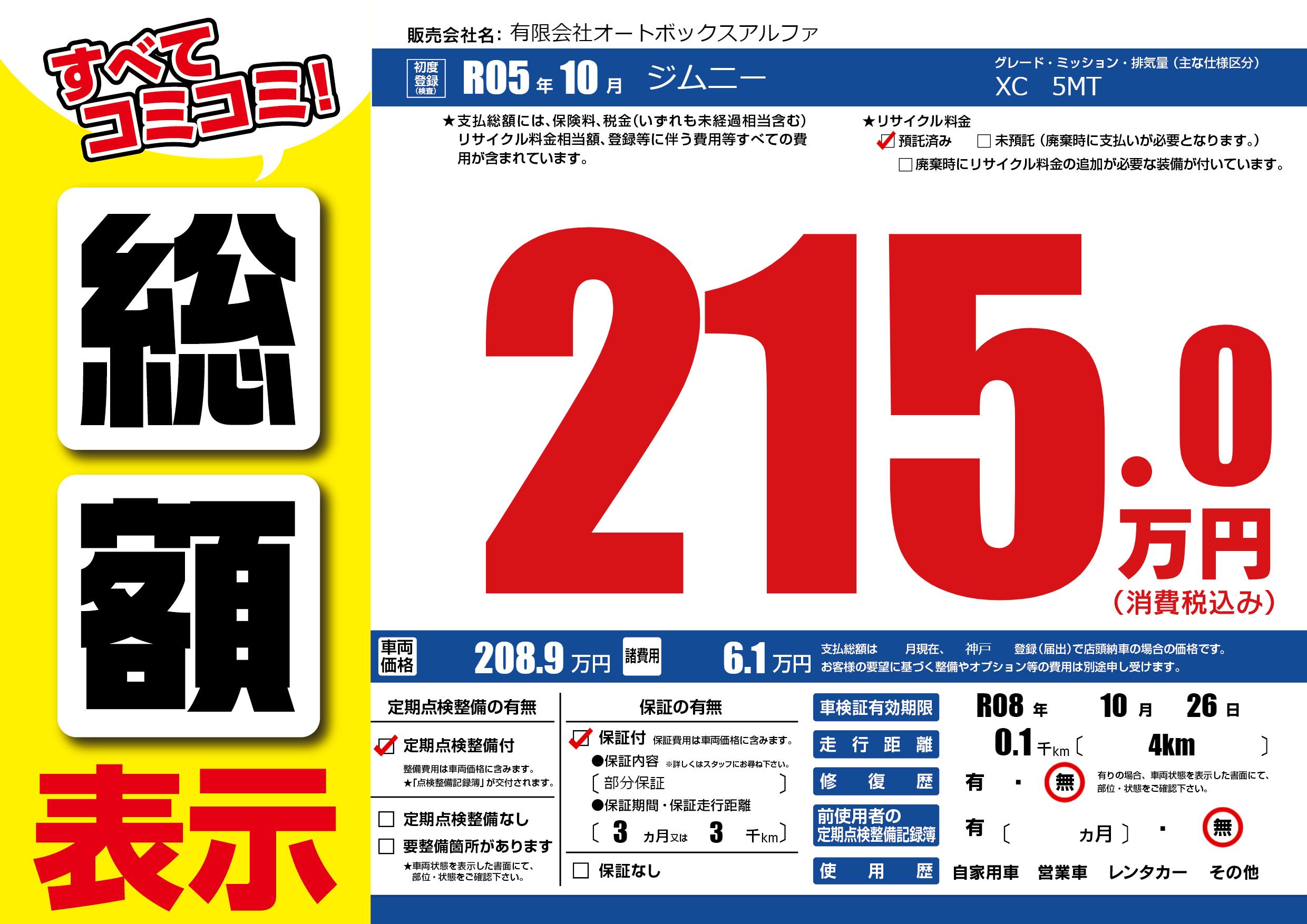 なし | 車検制限 | R08年10月26月 |