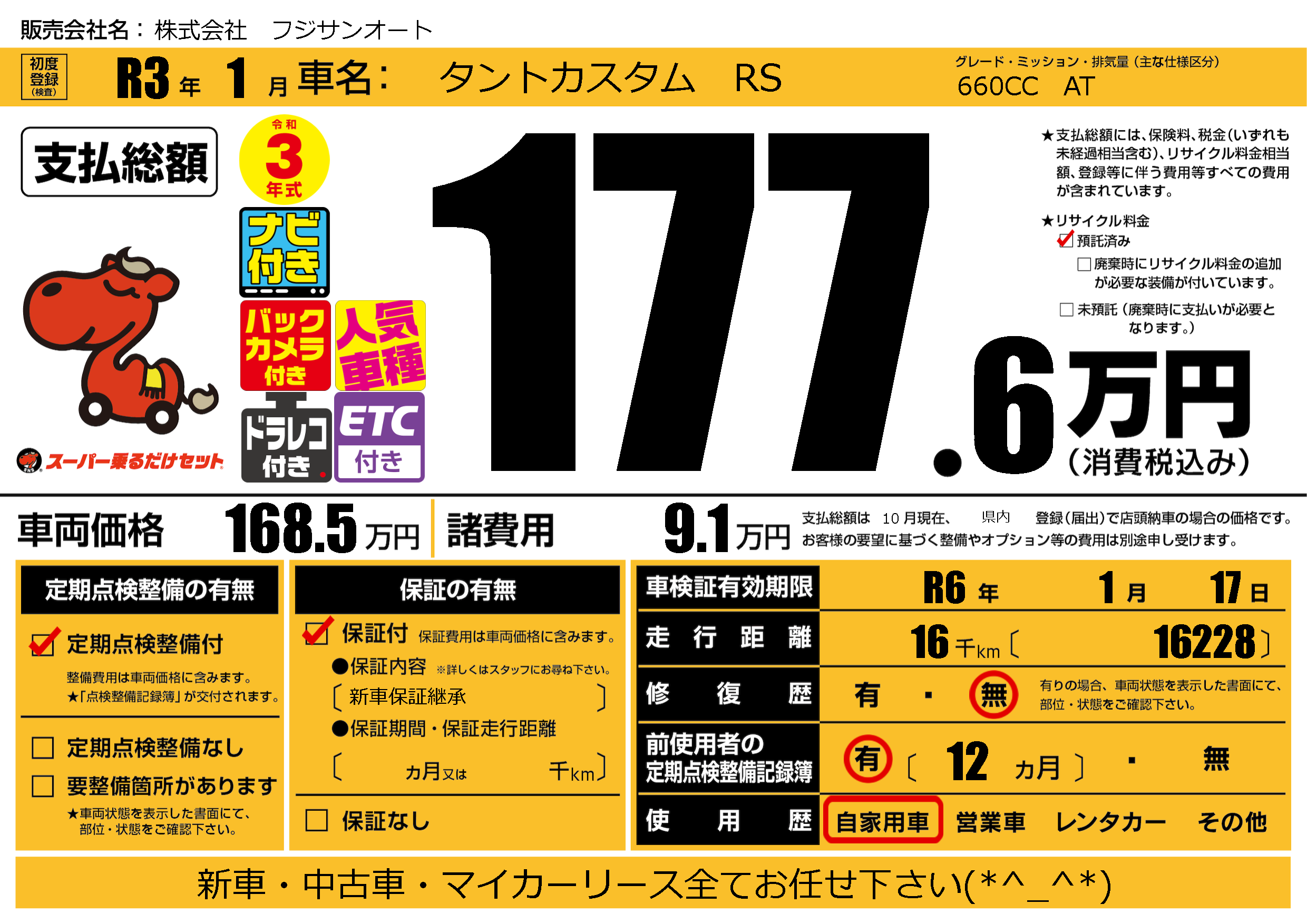 なし | 車検制限 | R6年1月17月 |
