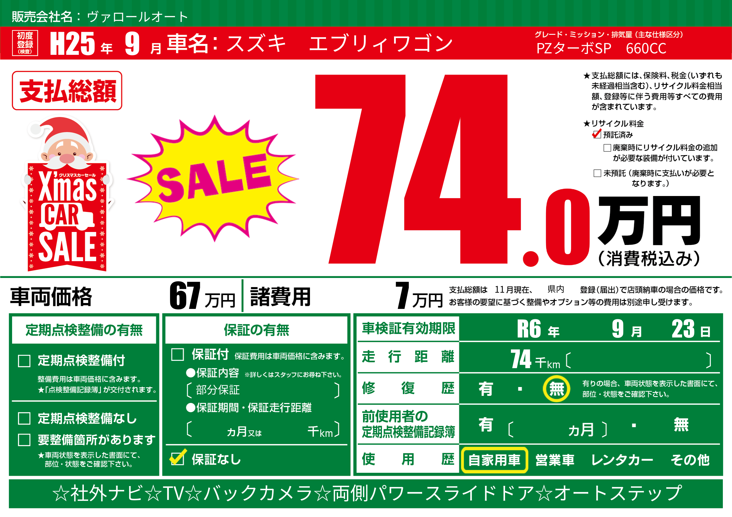 | 走行キロ | 7.4万km | 初年度登録 | H25年9月 |
