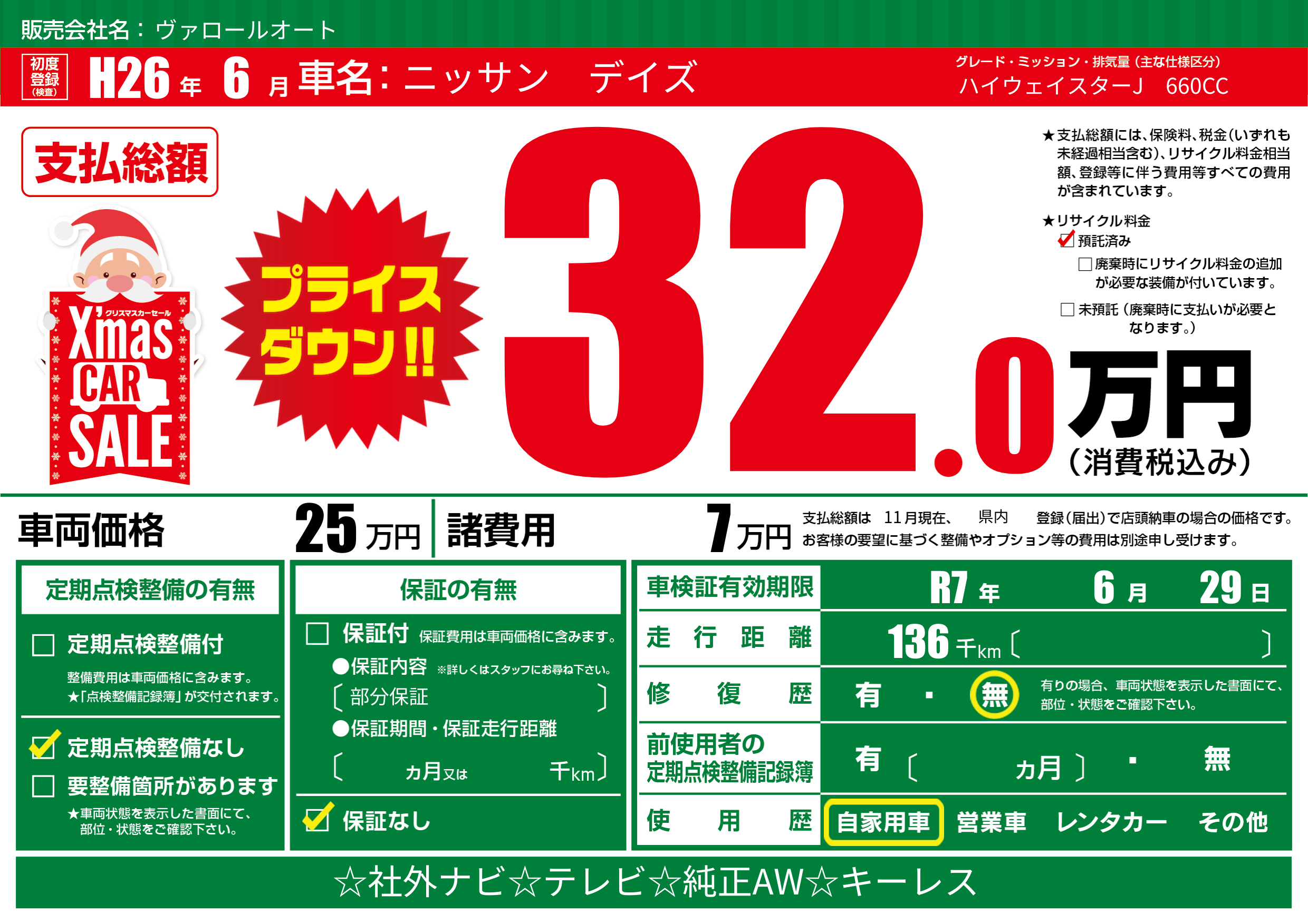 なし | 車検制限 | R7年6月29月 |
