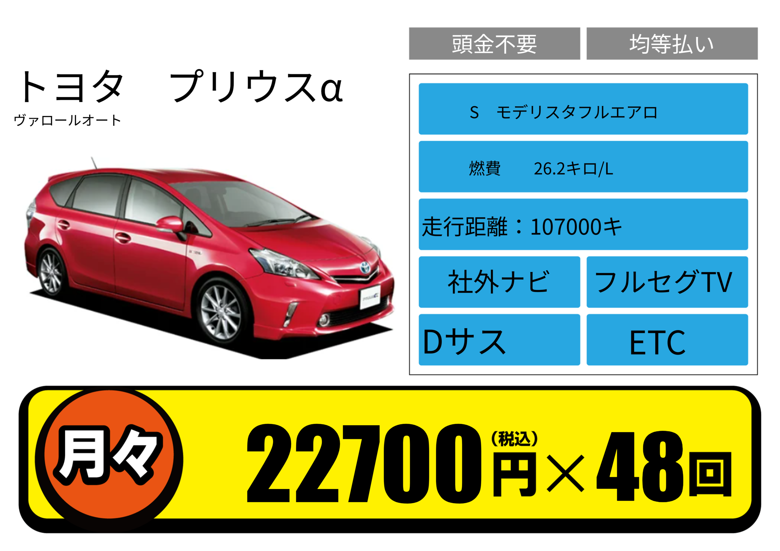 | 車名 | トヨタ プリウスα | グレード ミッション 排気量 |